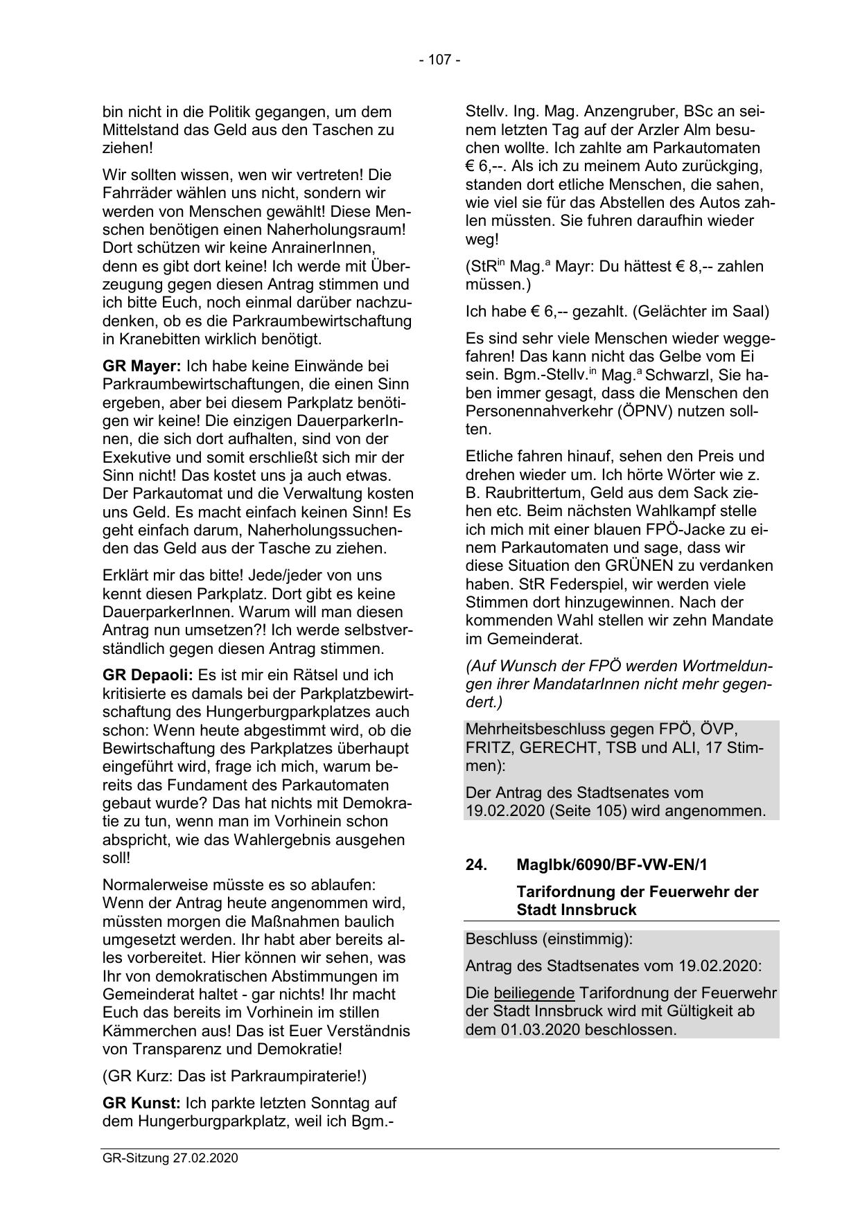 dem Hungerburgparkplatz, weil ich Bgm.GR-Sitzung 27.02.2020