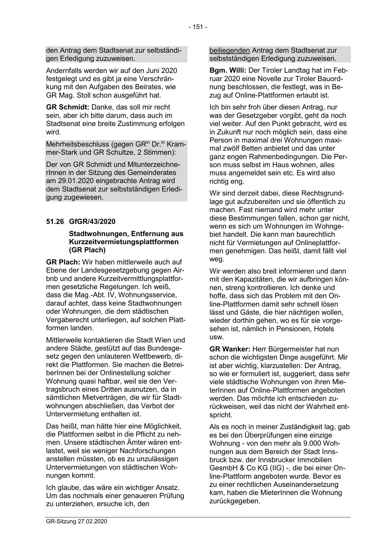 Bgm. Willi: Der Tiroler Landtag hat im Februar 2020 eine Novelle zur Tiroler Bauordnung beschlossen, die festlegt, was in Bezug auf Online-Plattformen erlaubt ist.