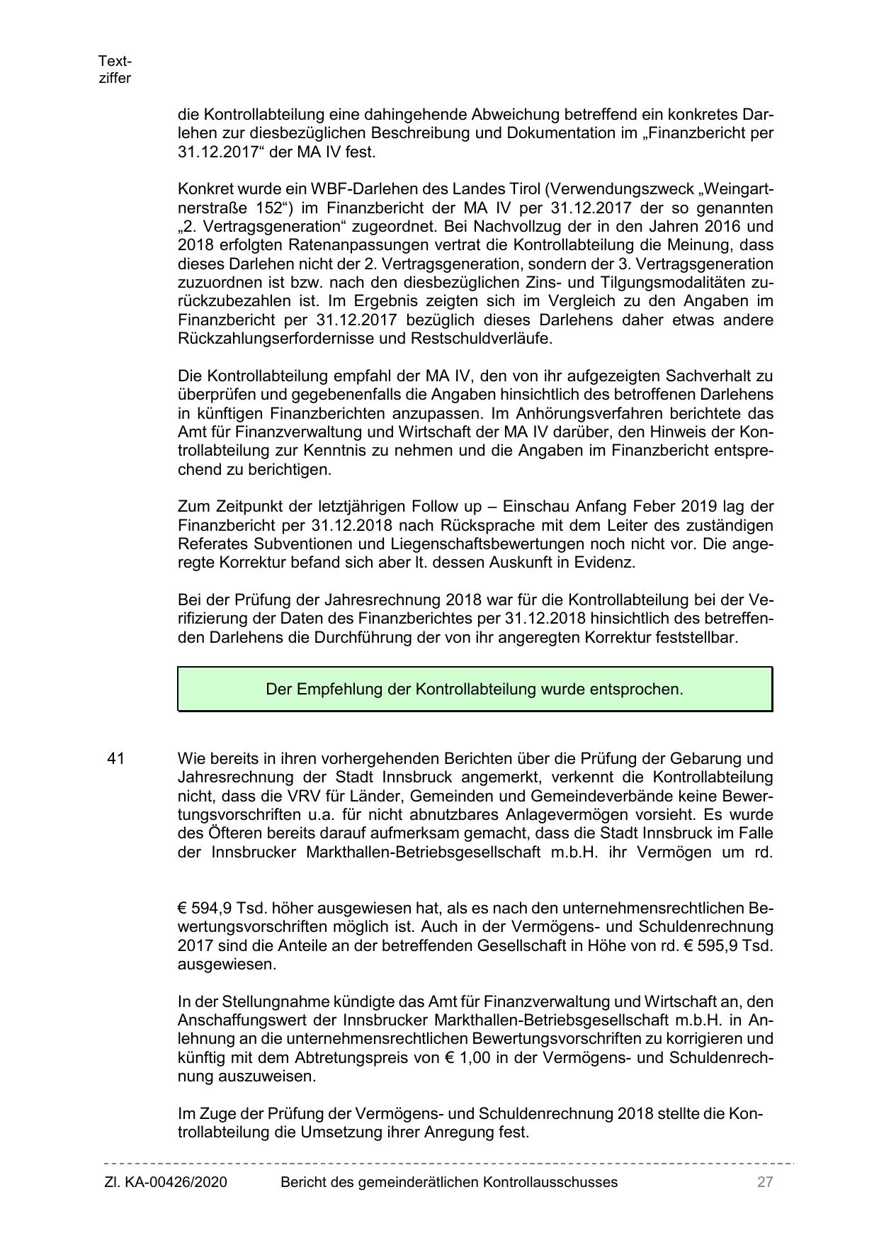 Jahresrechnung der Stadt Innsbruck angemerkt, verkennt die Kontrollabteilung