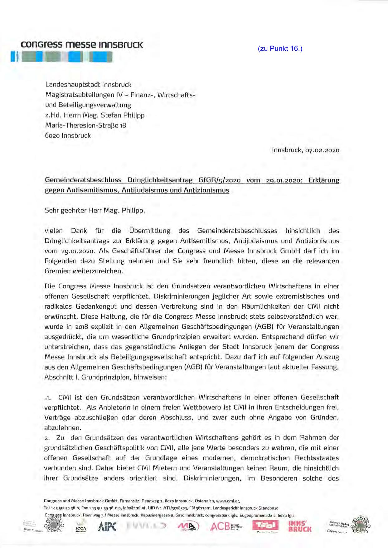 vom 29.01.2020. Als Geschäftsführer der Congress und Messe Innsbruck GmbH darf ich im