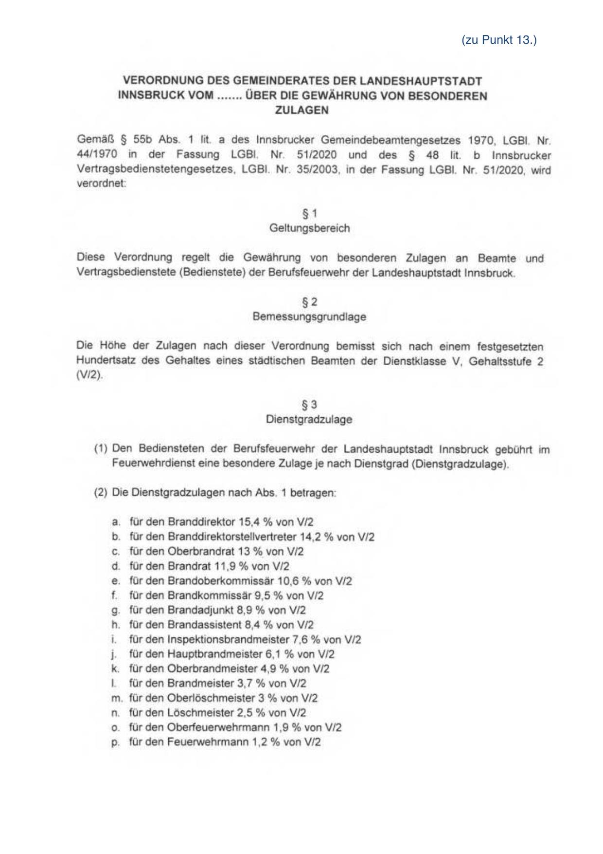 ( 1) Den Bediensteten der Berufsfeuerwehr der Landeshauptstadt Innsbruck gebuhrt im