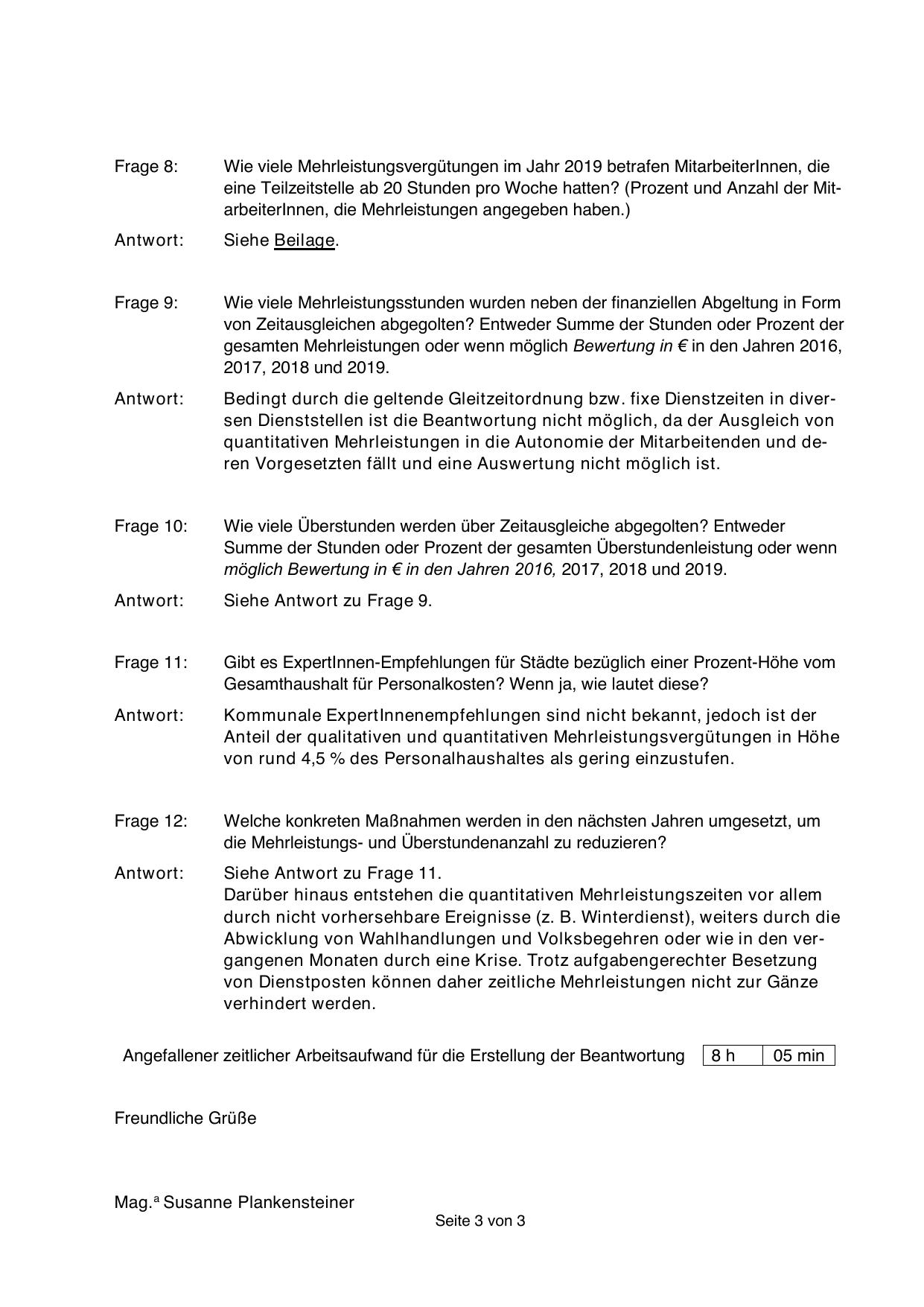 Angefallener zeitlicher Arbeitsaufwand für die Erstellung der Beantwortung