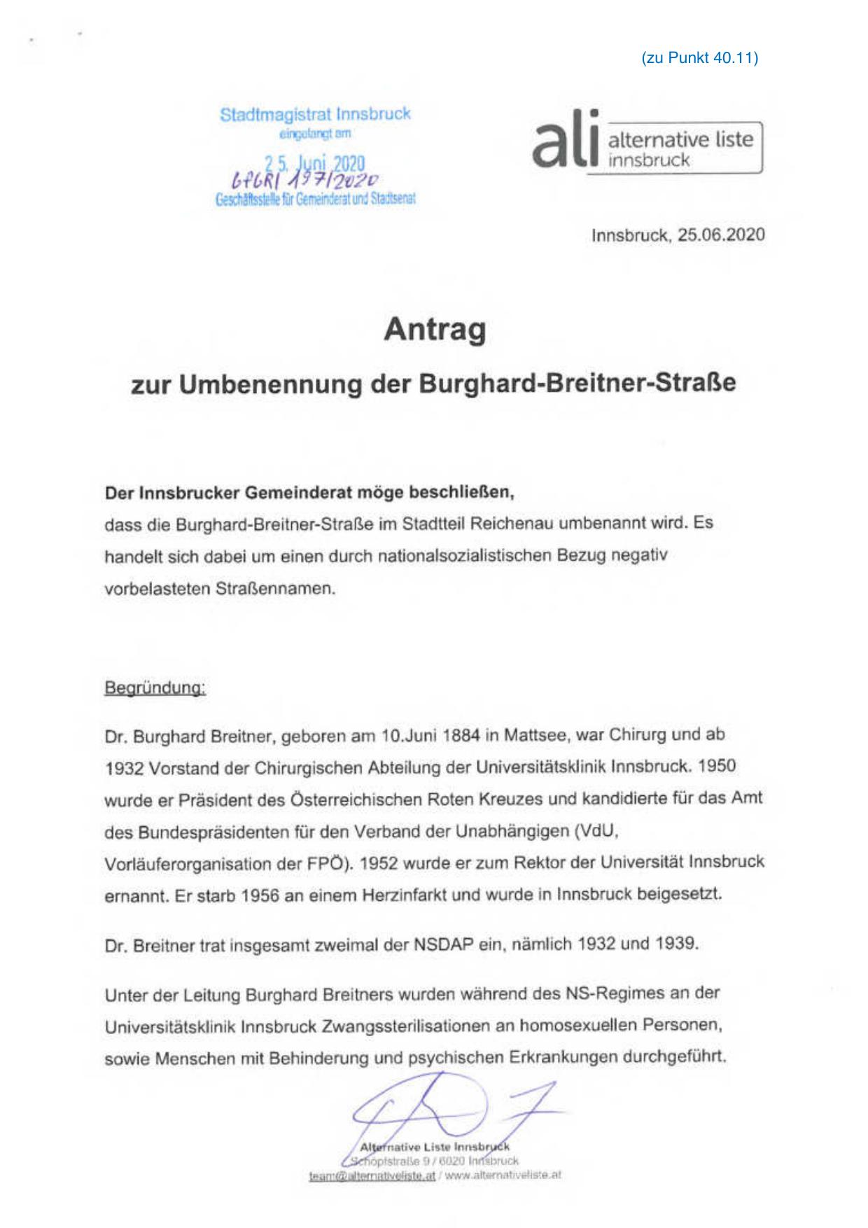 dass die Burghard-Breitner-Straße im Stadtteil Reichenau umbenannt wird. Es