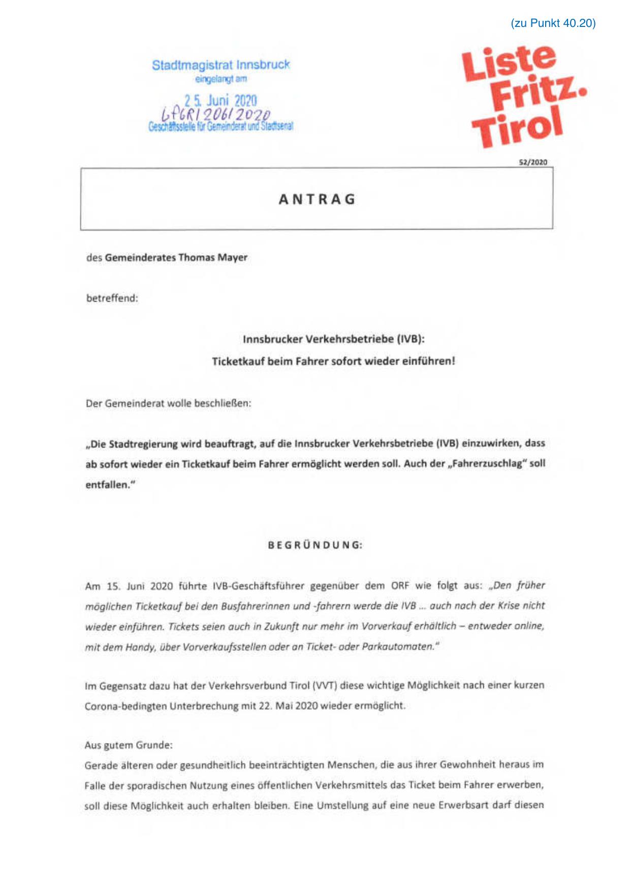 „Die Stadtregierung wird beauftragt, auf die Innsbrucker Verkehrsbetriebe ( IVB) einzuwirken, dass
