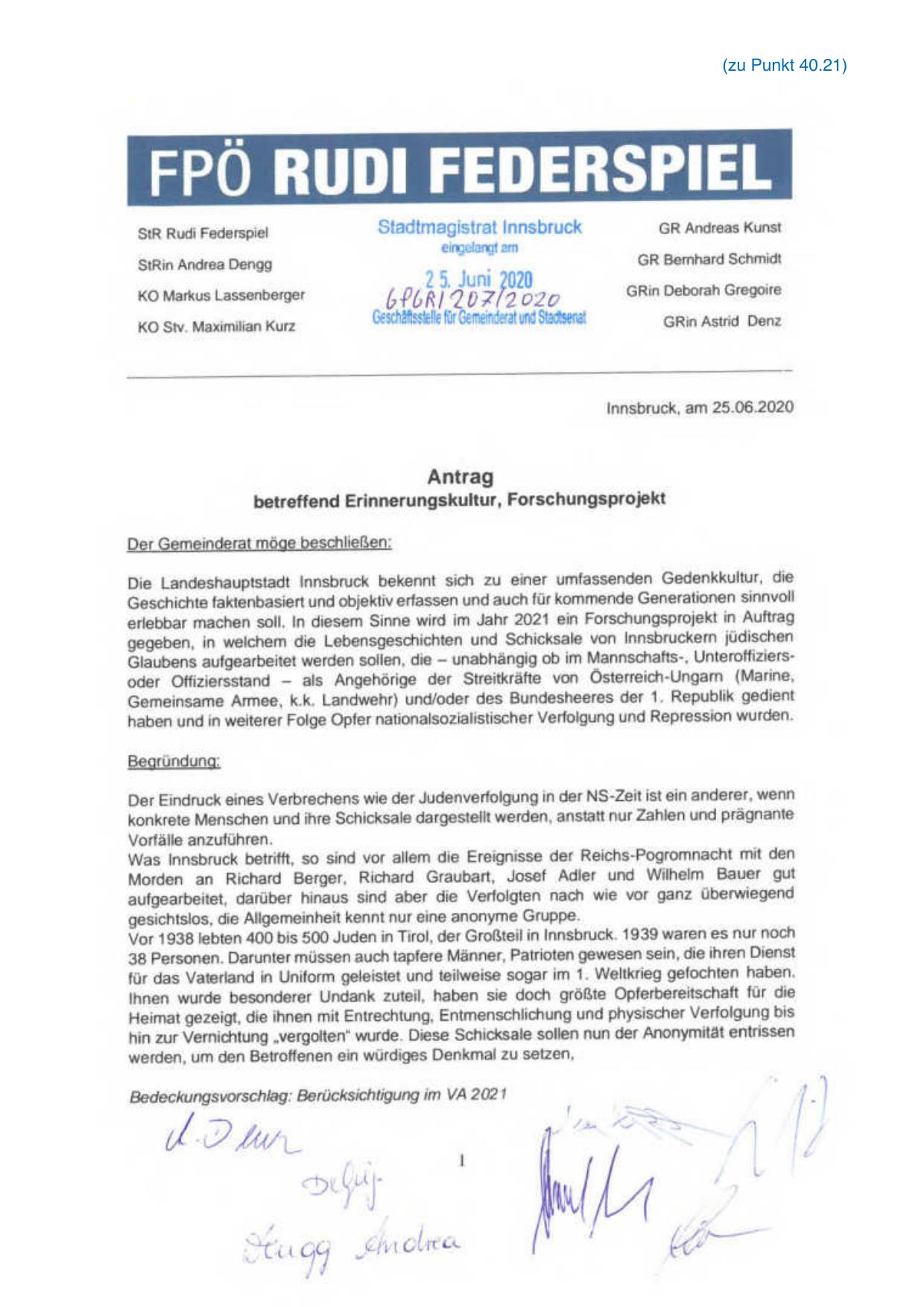 Die Landeshauptstadt Innsbruck bekennt sich zu einer umfassenden Gedenkkultur, die