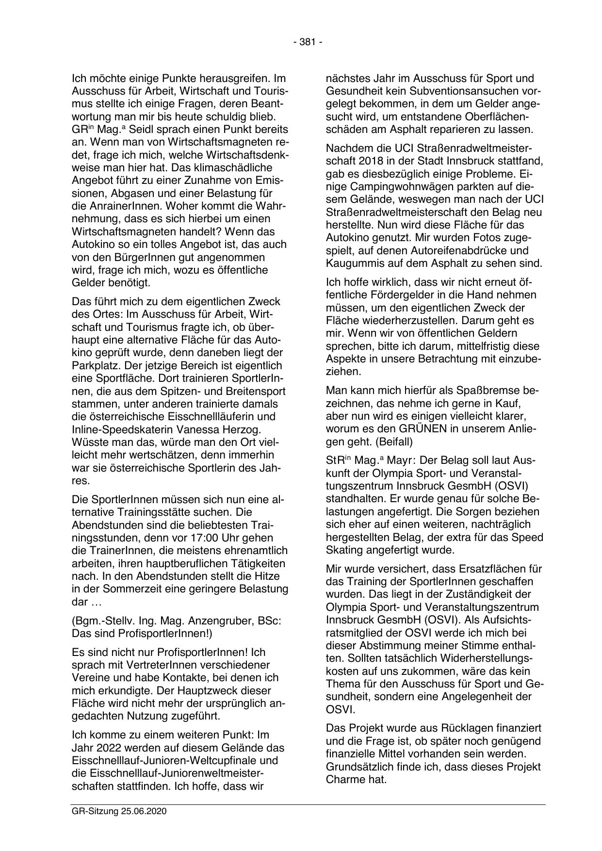 Innsbruck GesmbH (OSVI). Als Aufsichtsratsmitglied der OSVI werde ich mich bei