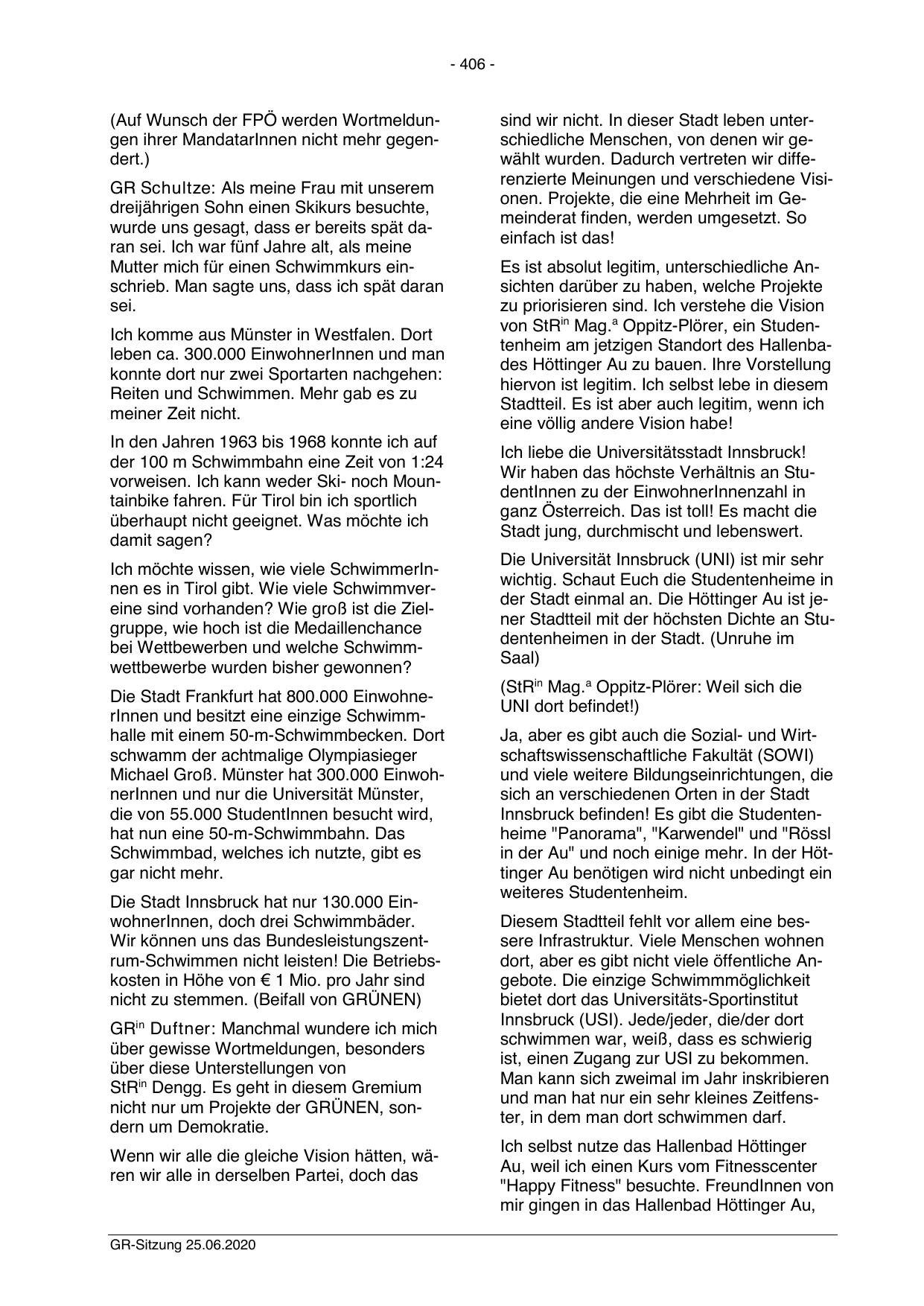 von StRin Mag.a Oppitz-Plörer, ein Studentenheim am jetzigen Standort des Hallenbades Höttinger Au zu bauen. Ihre Vorstellung