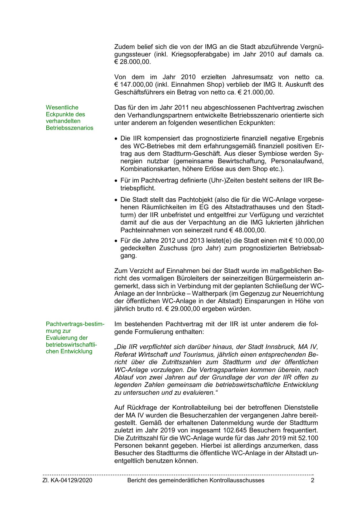 „Die IIR verpflichtet sich darüber hinaus, der Stadt Innsbruck, MA IV,