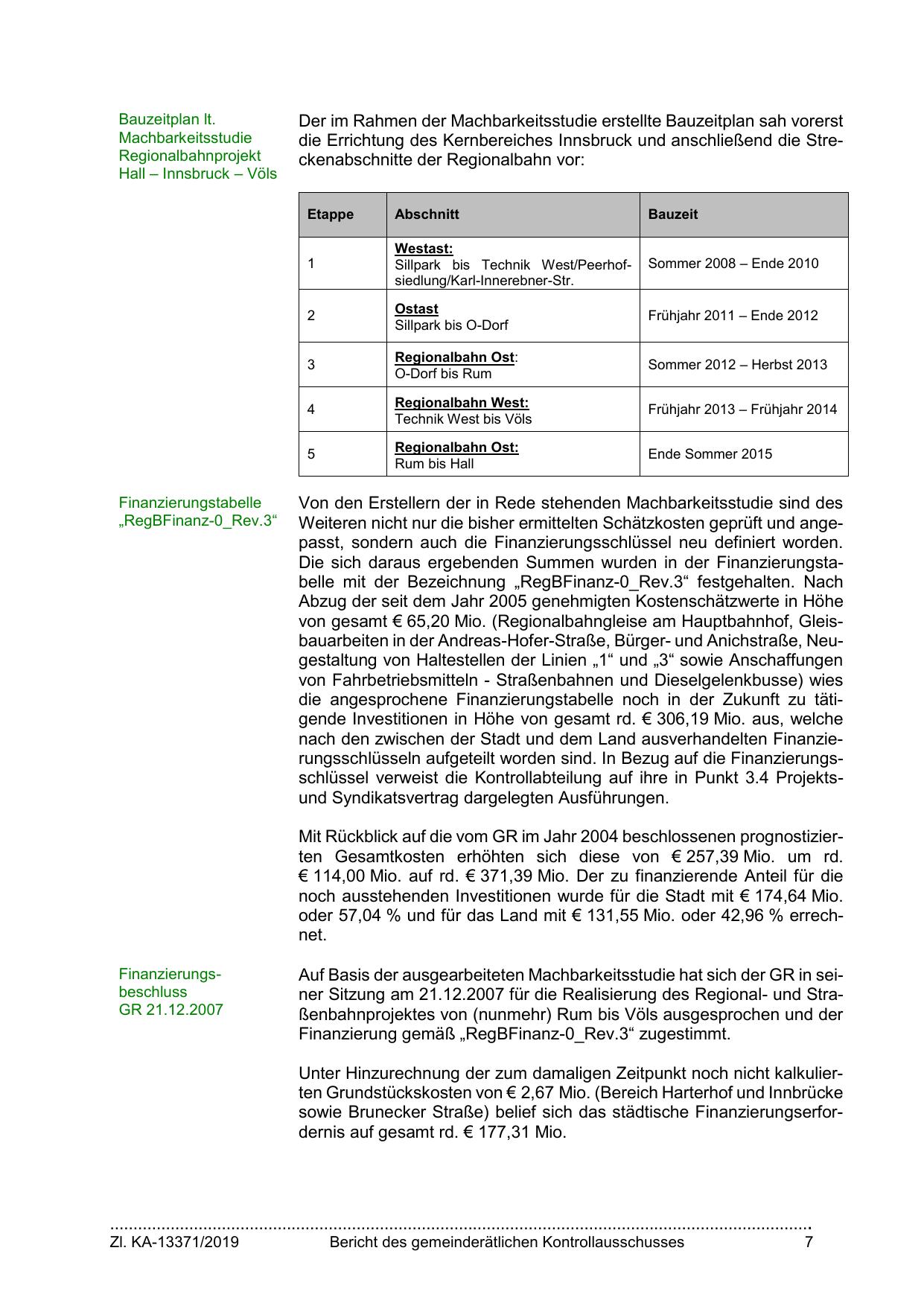 Auf Basis der ausgearbeiteten Machbarkeitsstudie hat sich der GR in seiner Sitzung am 21.12.2007 für die Realisierung des Regional- und Straßenbahnprojektes von (nunmehr) Rum bis Völs ausgesprochen und der