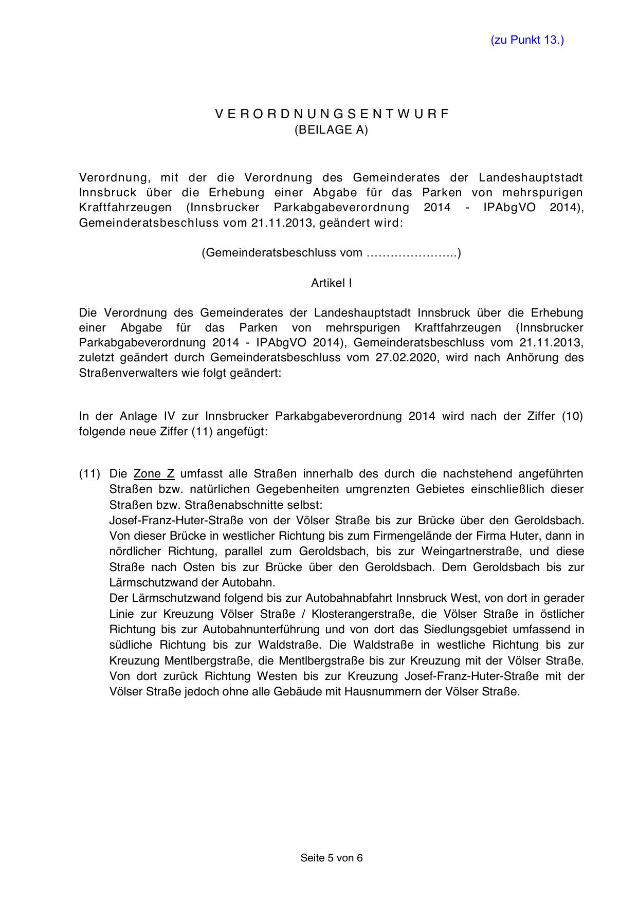 Parkabgabeverordnung 2014 - IPAbgVO 2014), Gemeinderatsbeschluss vom 21.11.2013,