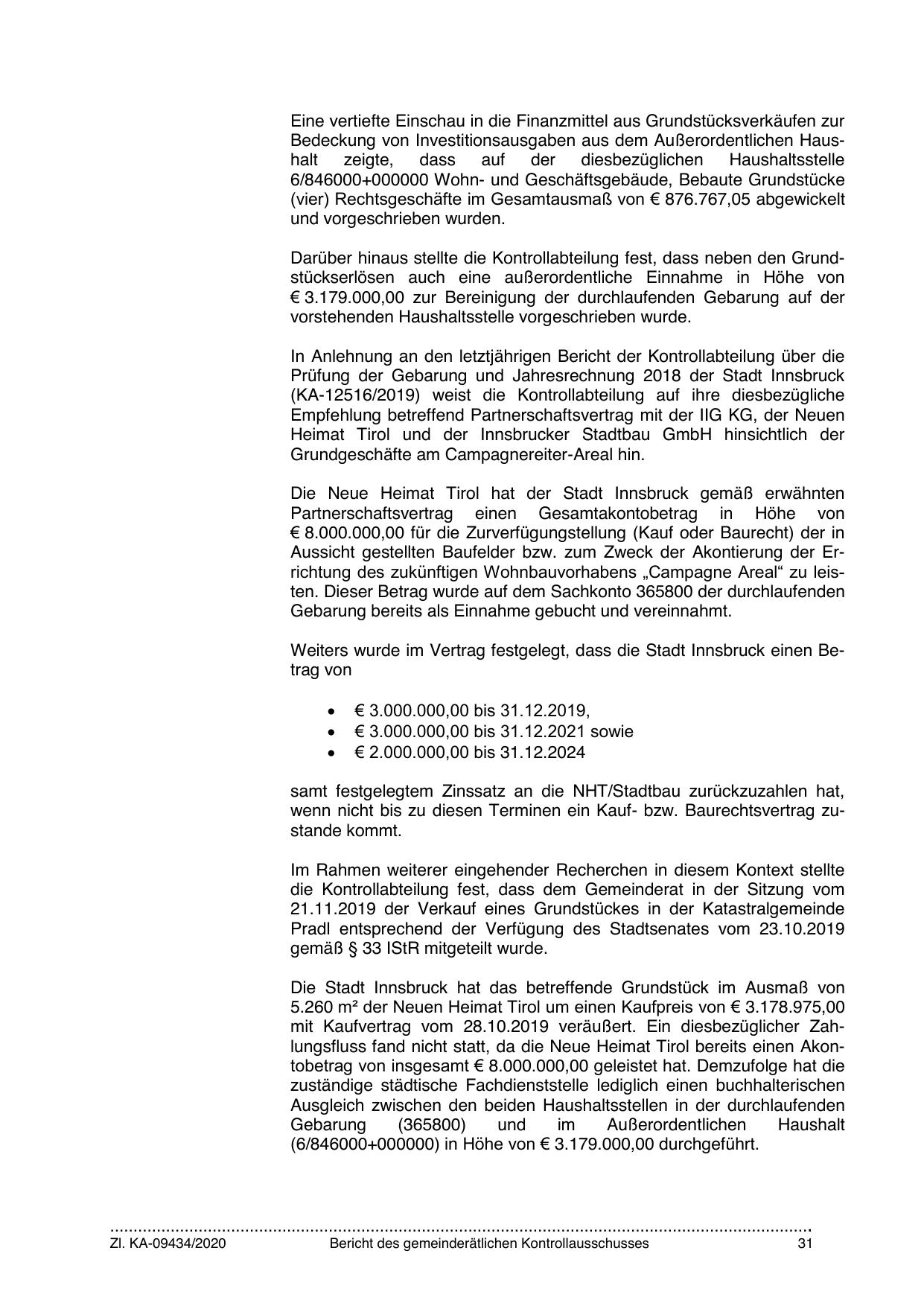 mit Kaufvertrag vom 28.10.2019 veräußert. Ein diesbezüglicher Zahlungsfluss fand nicht statt, da die Neue Heimat Tirol bereits einen Akontobetrag von insgesamt € 8.000.000,00 geleistet hat. Demzufolge hat die