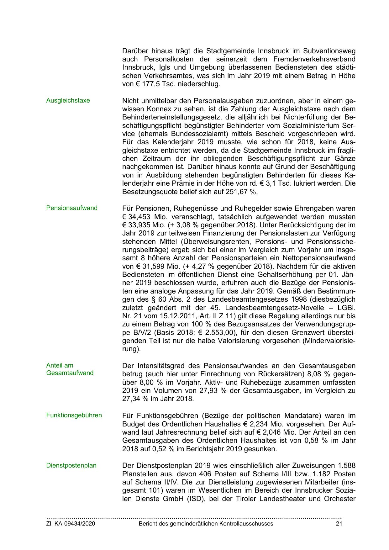 Innsbruck, Igls und Umgebung überlassenen Bediensteten des städtischen Verkehrsamtes, was sich im Jahr 2019 mit einem Betrag in Höhe