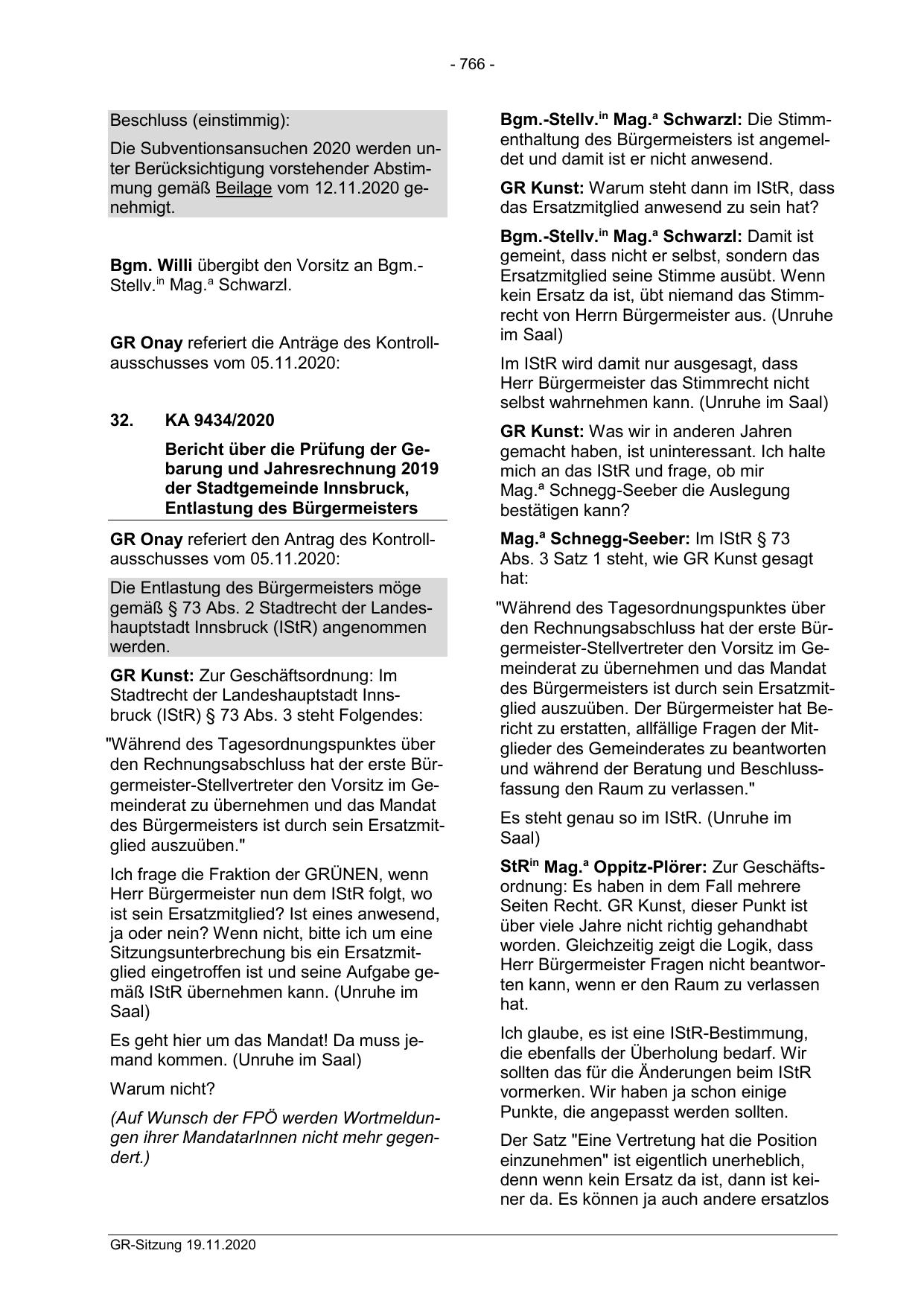 gemäß § 73 Abs. 2 Stadtrecht der Landeshauptstadt Innsbruck (IStR) angenommen