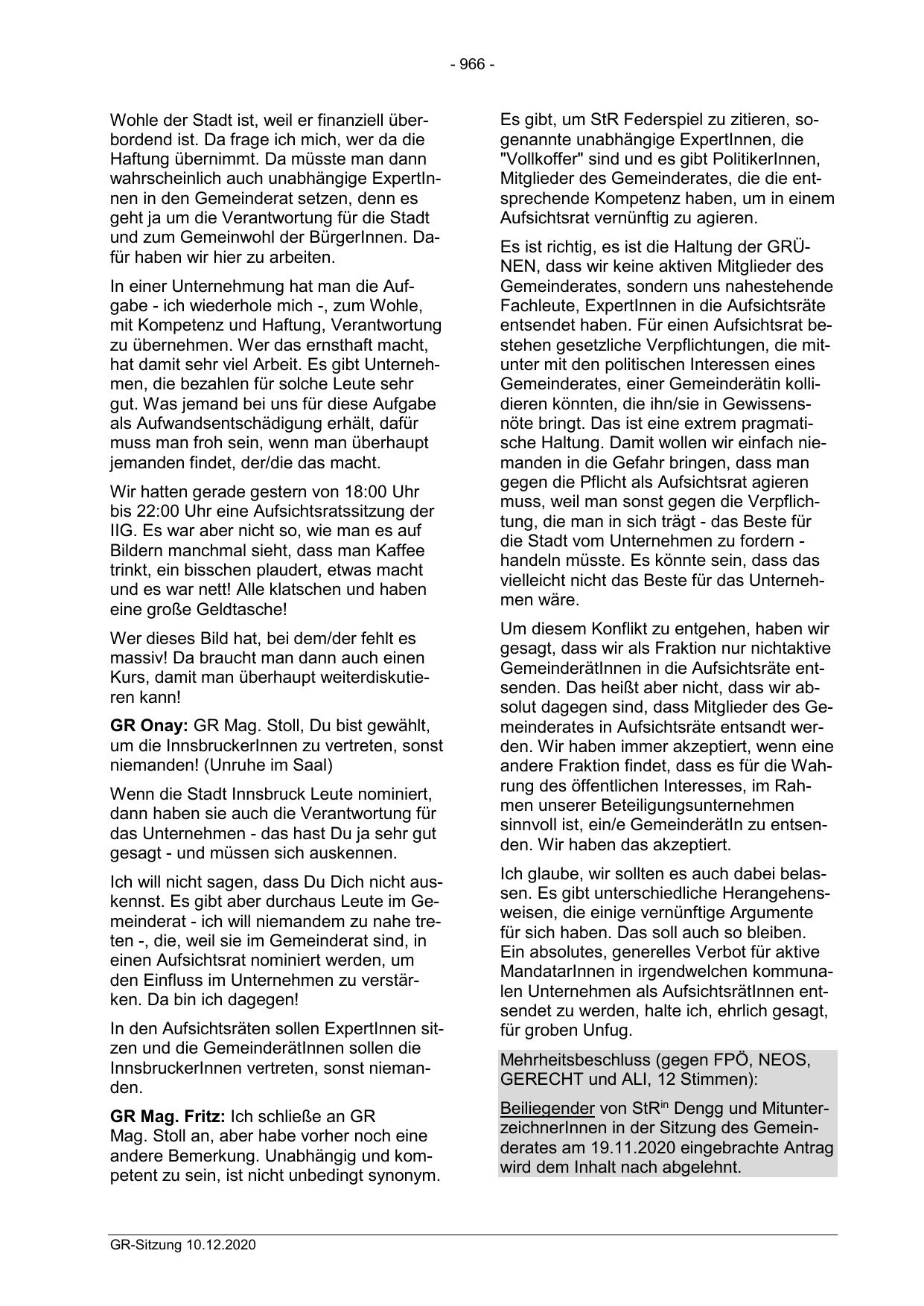 GemeinderätInnen in die Aufsichtsräte entsenden. Das heißt aber nicht, dass wir absolut dagegen sind, dass Mitglieder des Gemeinderates in Aufsichtsräte entsandt werden. Wir haben immer akzeptiert, wenn eine