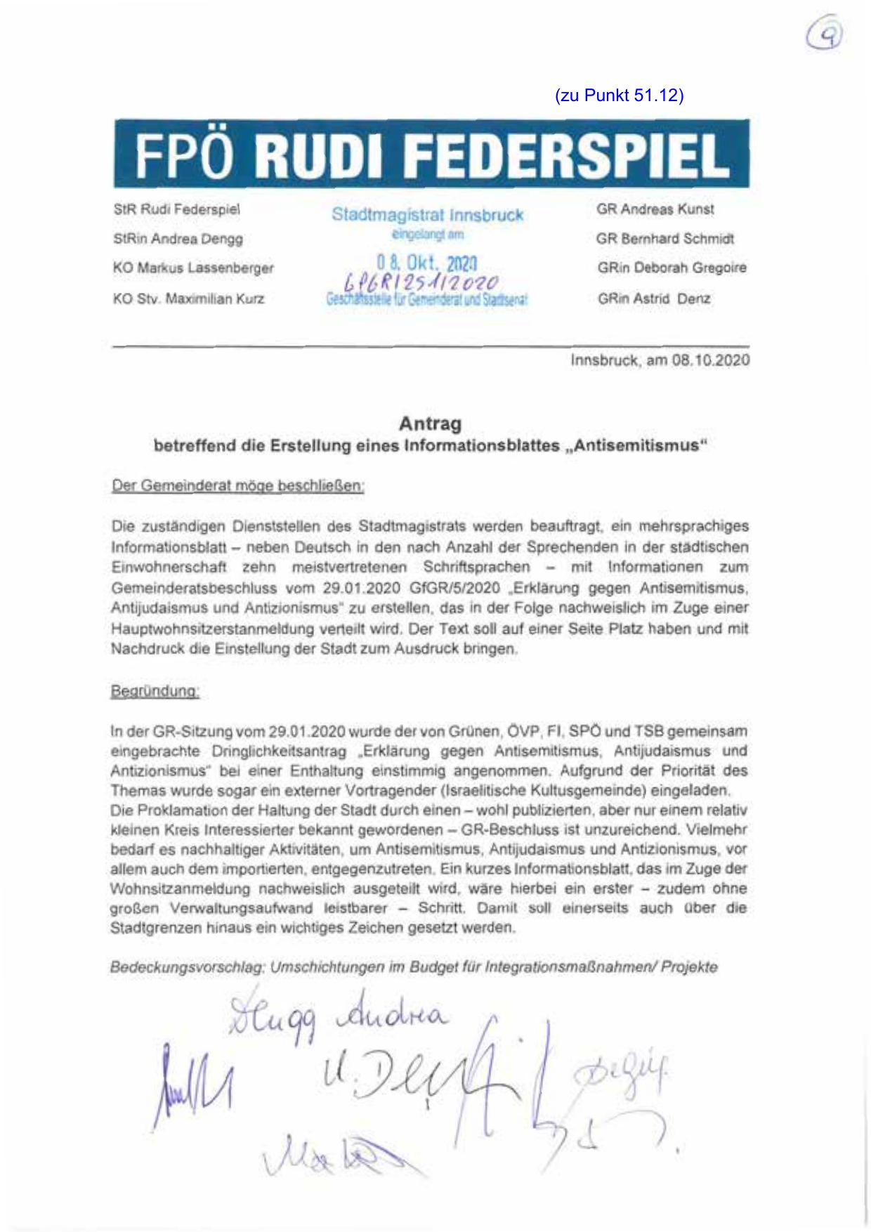 In der GR-Sitzung vom 29.01.2020 wurde der von Grünen, ÖVP, FI , SPÖ und TSB gemeinsam