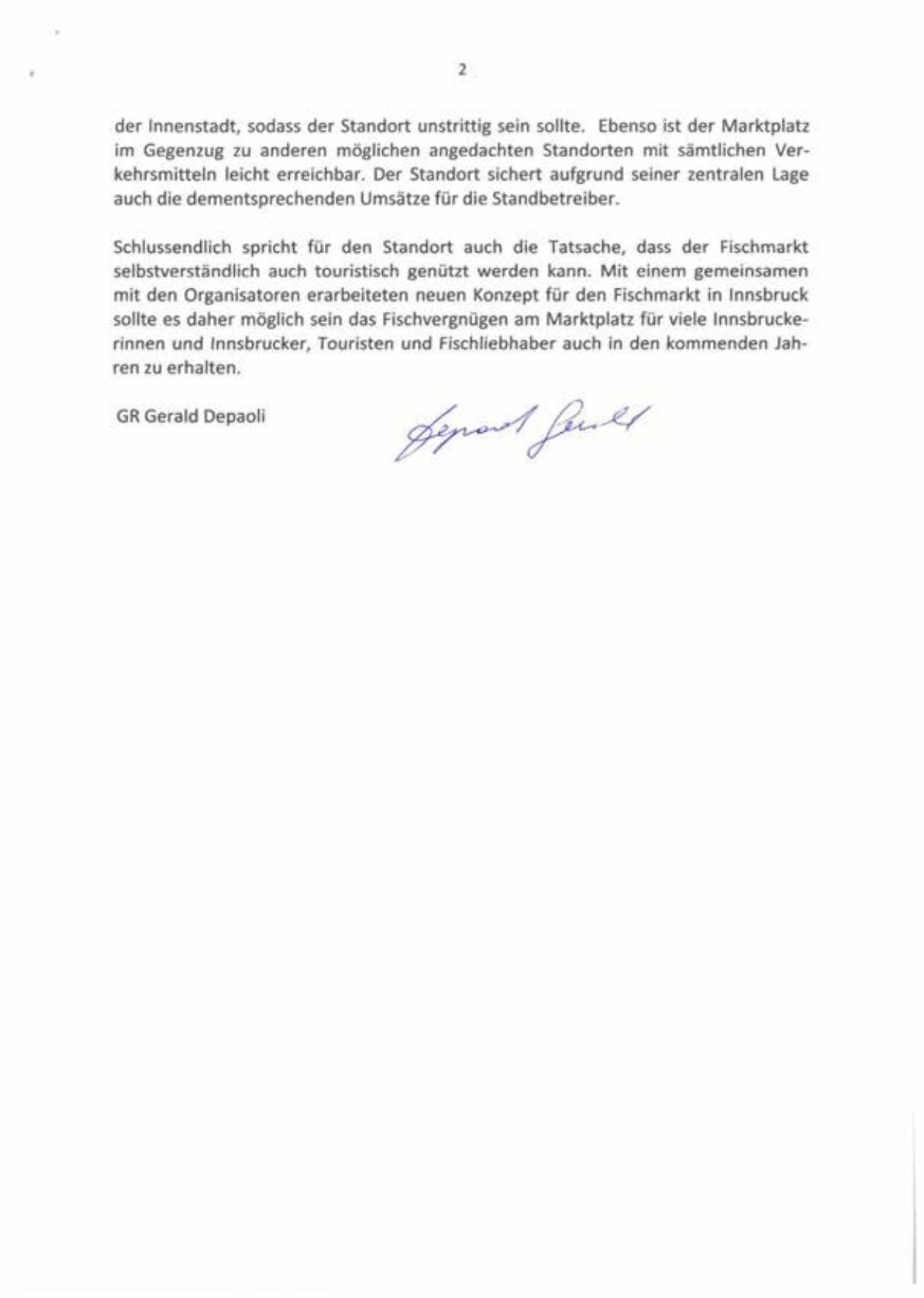 sollte es daher möglich sein das Fischvergnügen am Marktplatz für viele lnnsbruckerinnen und lnnsbrucker, Touristen und Fischliebhaber auch in den kommenden Jahren zu erhalten.