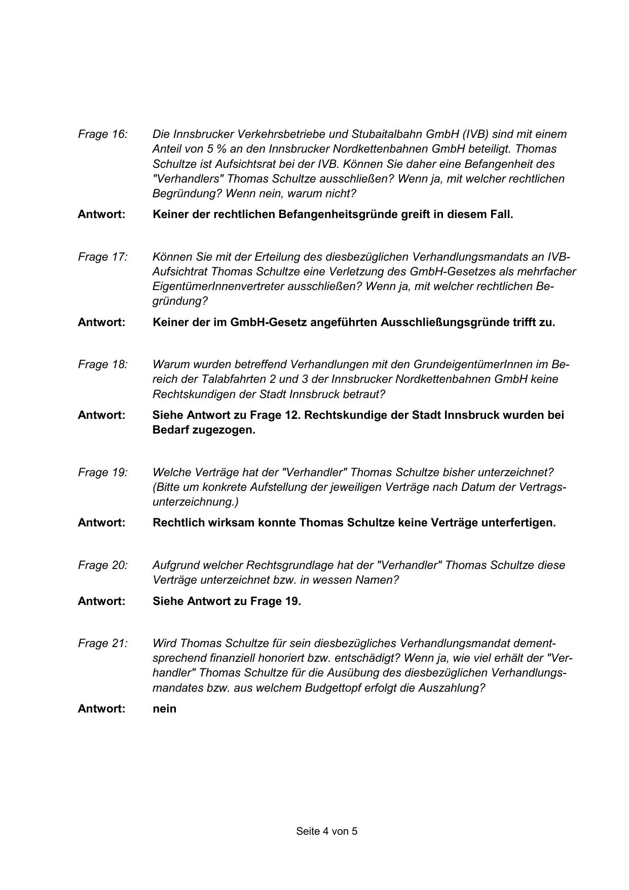 Können Sie mit der Erteilung des diesbezüglichen Verhandlungsmandats an IVBAufsichtrat Thomas Schultze eine Verletzung des GmbH-Gesetzes als mehrfacher