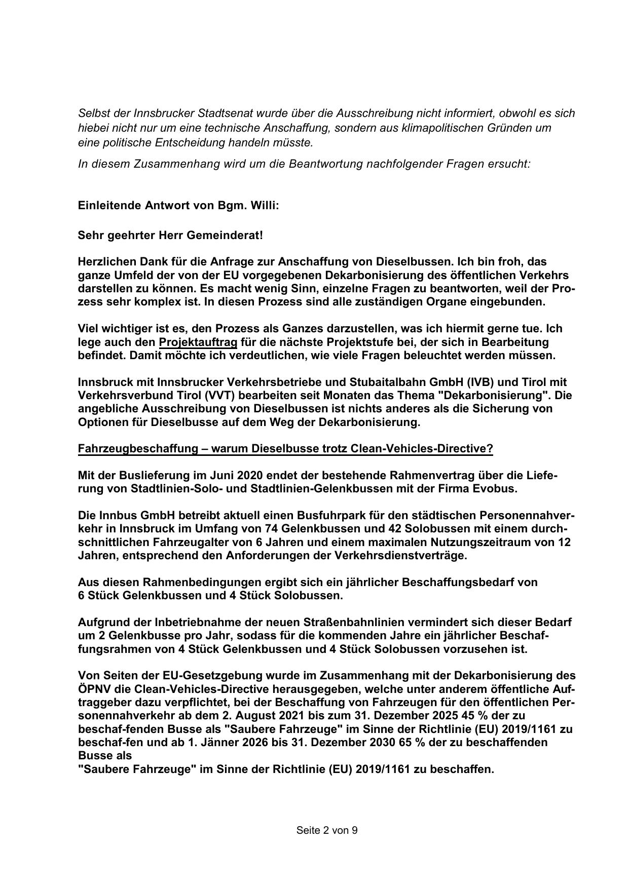 Herzlichen Dank für die Anfrage zur Anschaffung von Dieselbussen. Ich bin froh, das