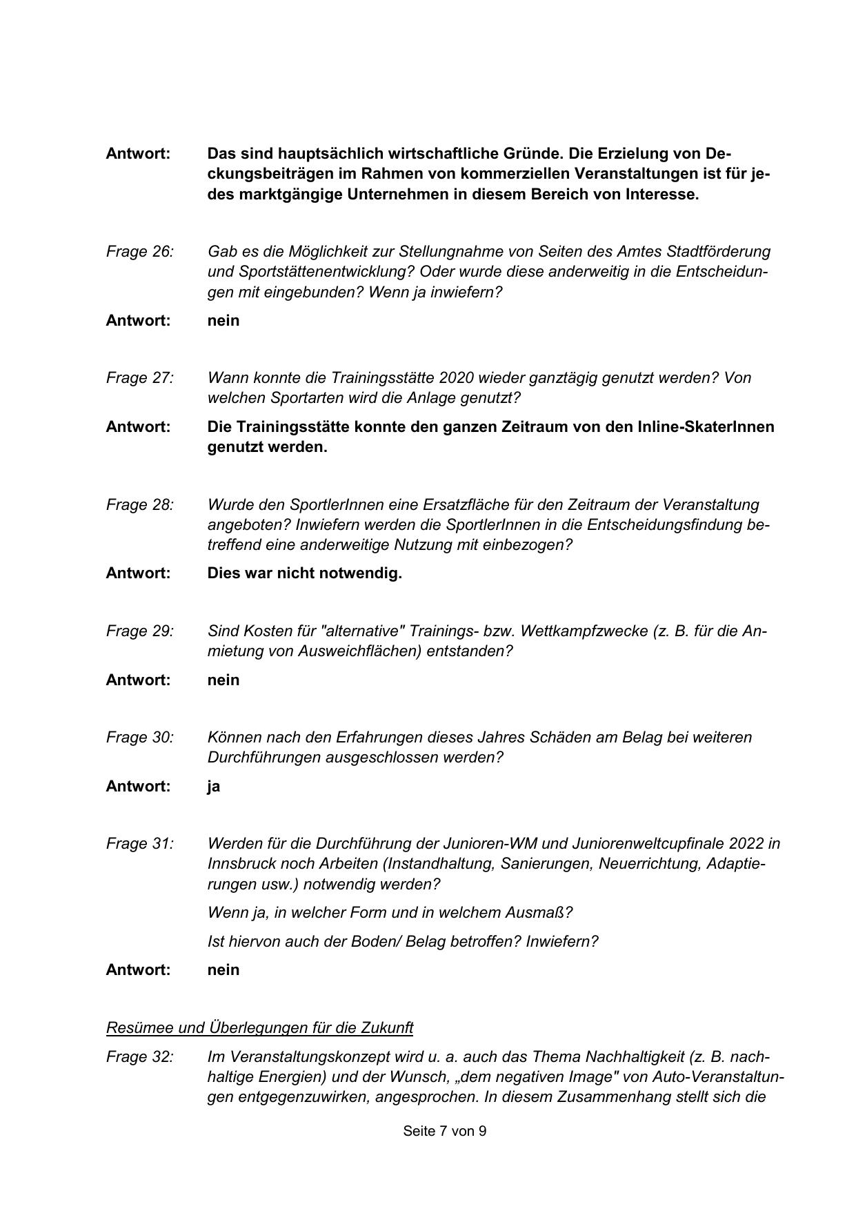 Wurde den SportlerInnen eine Ersatzfläche für den Zeitraum der Veranstaltung