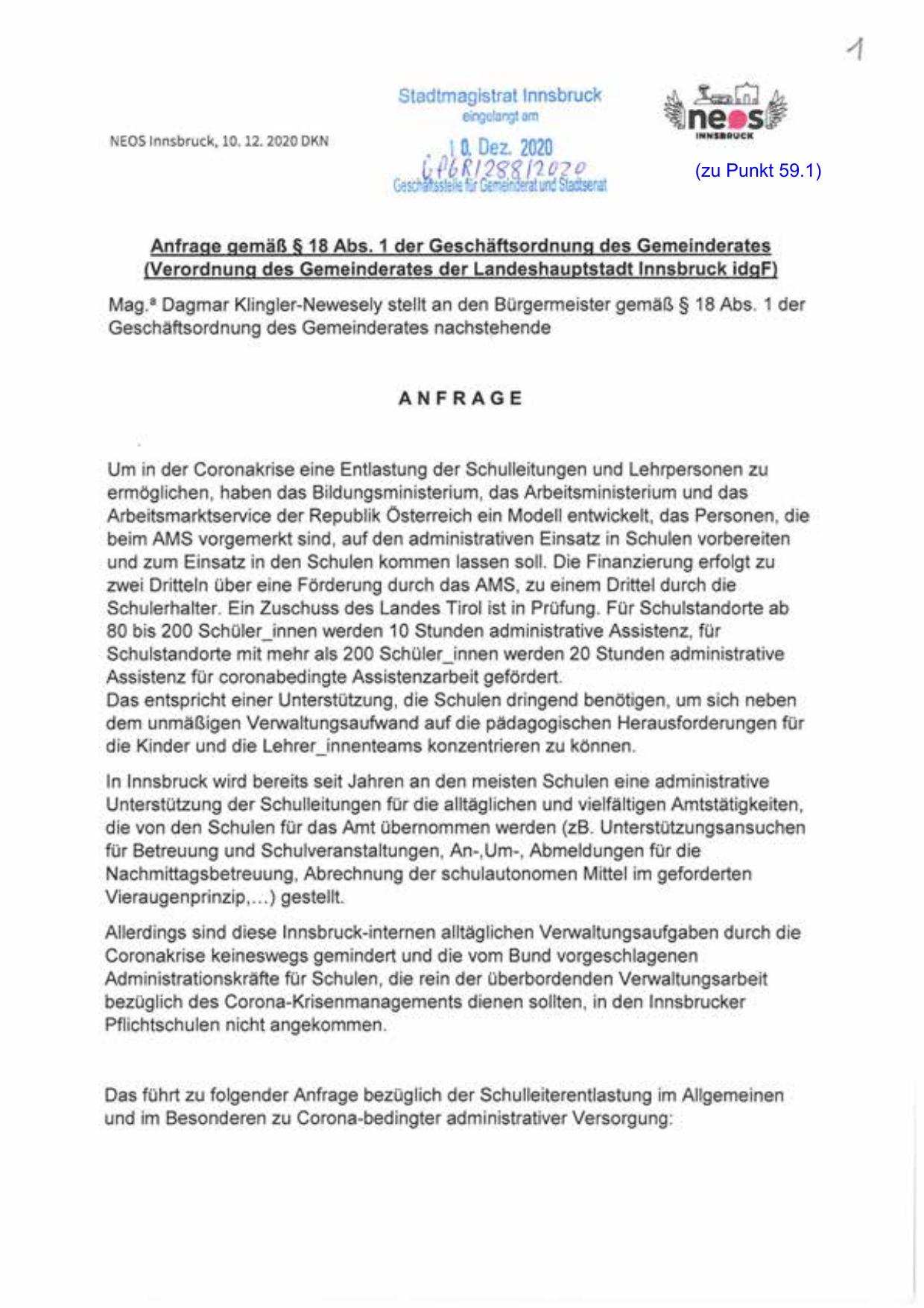 bezüglich des Corona-Krisenmanagements dienen sollten, in den lnnsbrucker