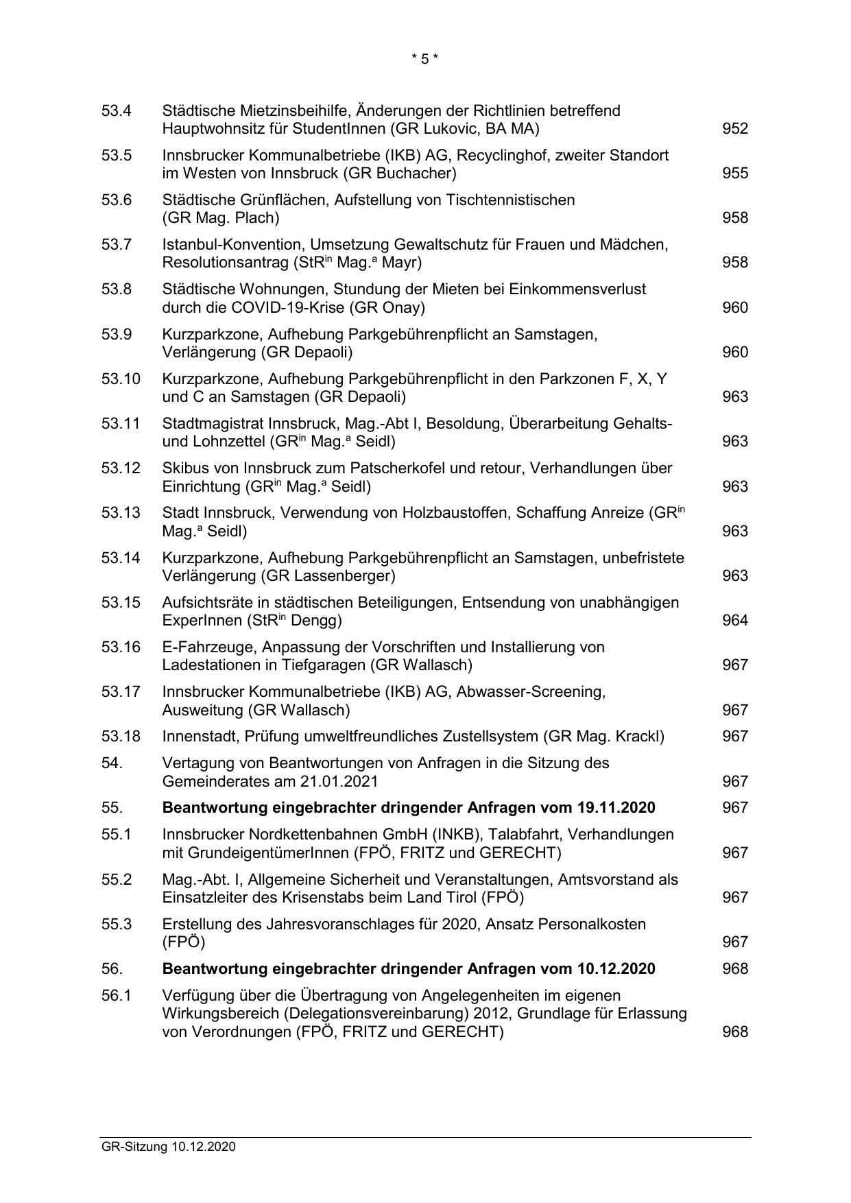 Beantwortung eingebrachter dringender Anfragen vom 10.12.2020