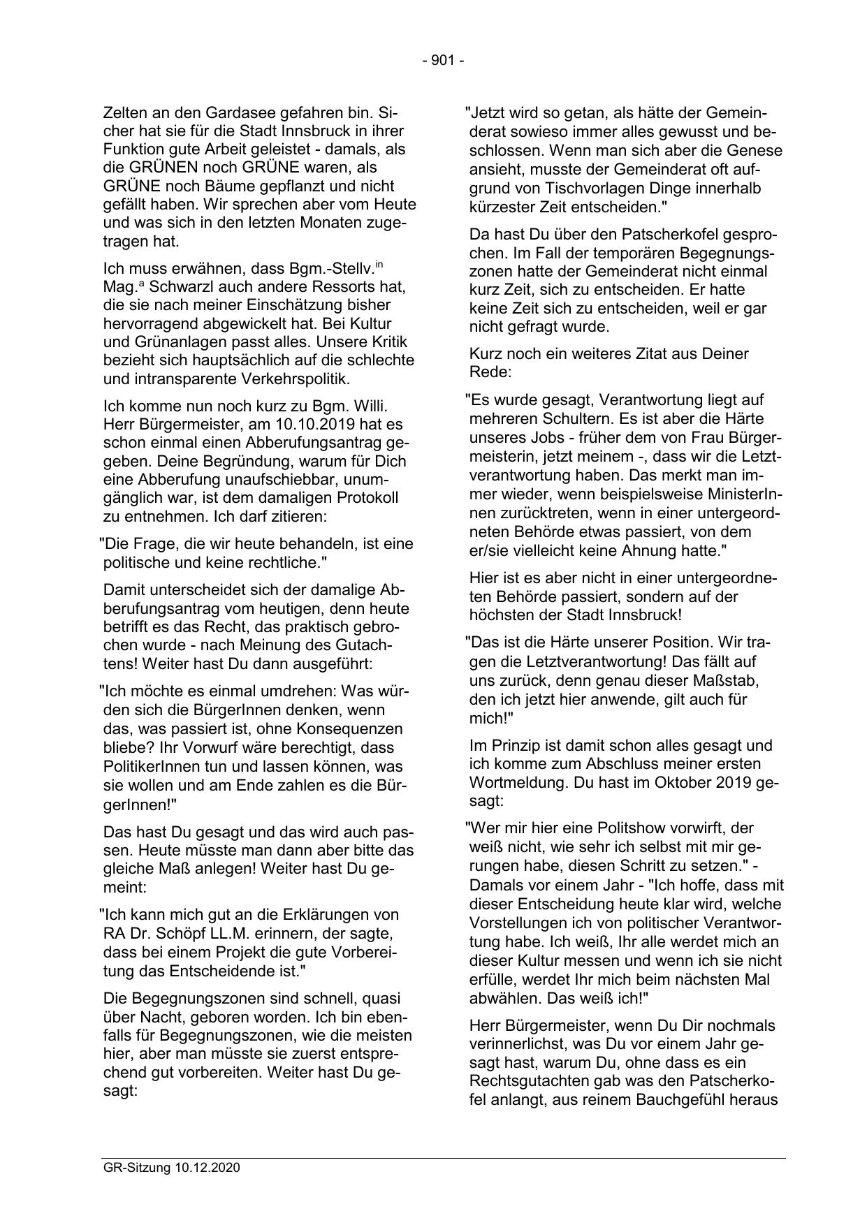 Da hast Du über den Patscherkofel gesprochen. Im Fall der temporären Begegnungszonen hatte der Gemeinderat nicht einmal