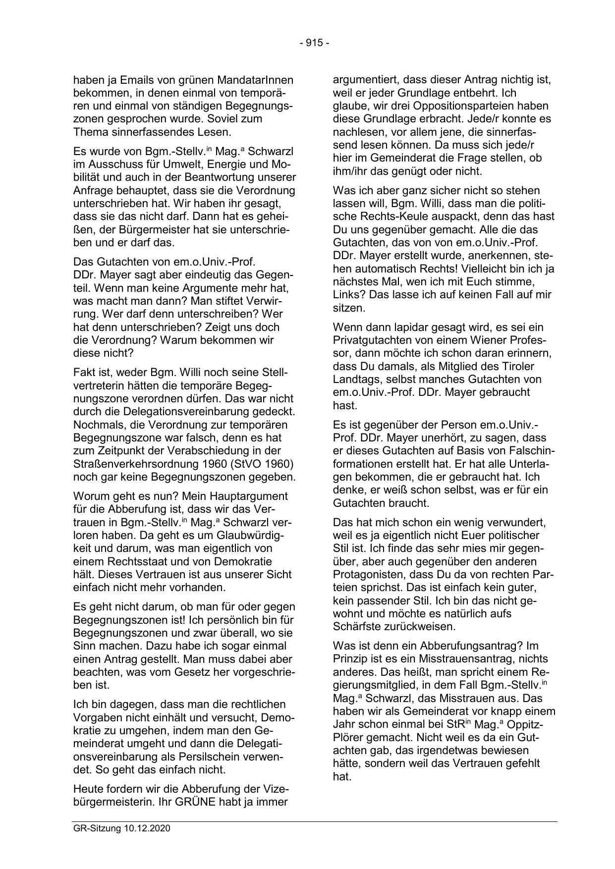 anderes. Das heißt, man spricht einem Regierungsmitglied, in dem Fall Bgm.-Stellv.in