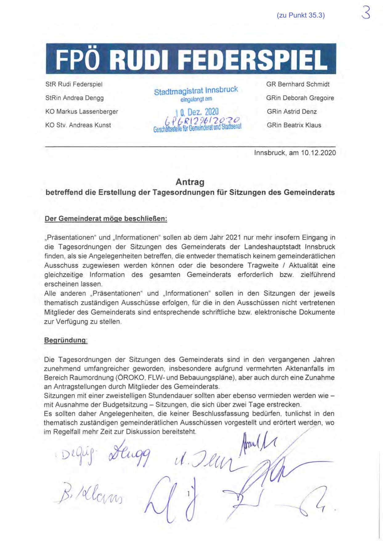 die Tagesordnungen der Sitzungen des Gemeinderats der Landeshauptstadt Innsbruck