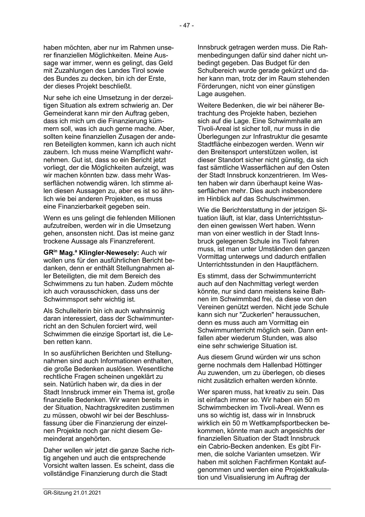 Innsbruck getragen werden muss. Die Rahmenbedingungen dafür sind daher nicht unbedingt gegeben. Das Budget für den