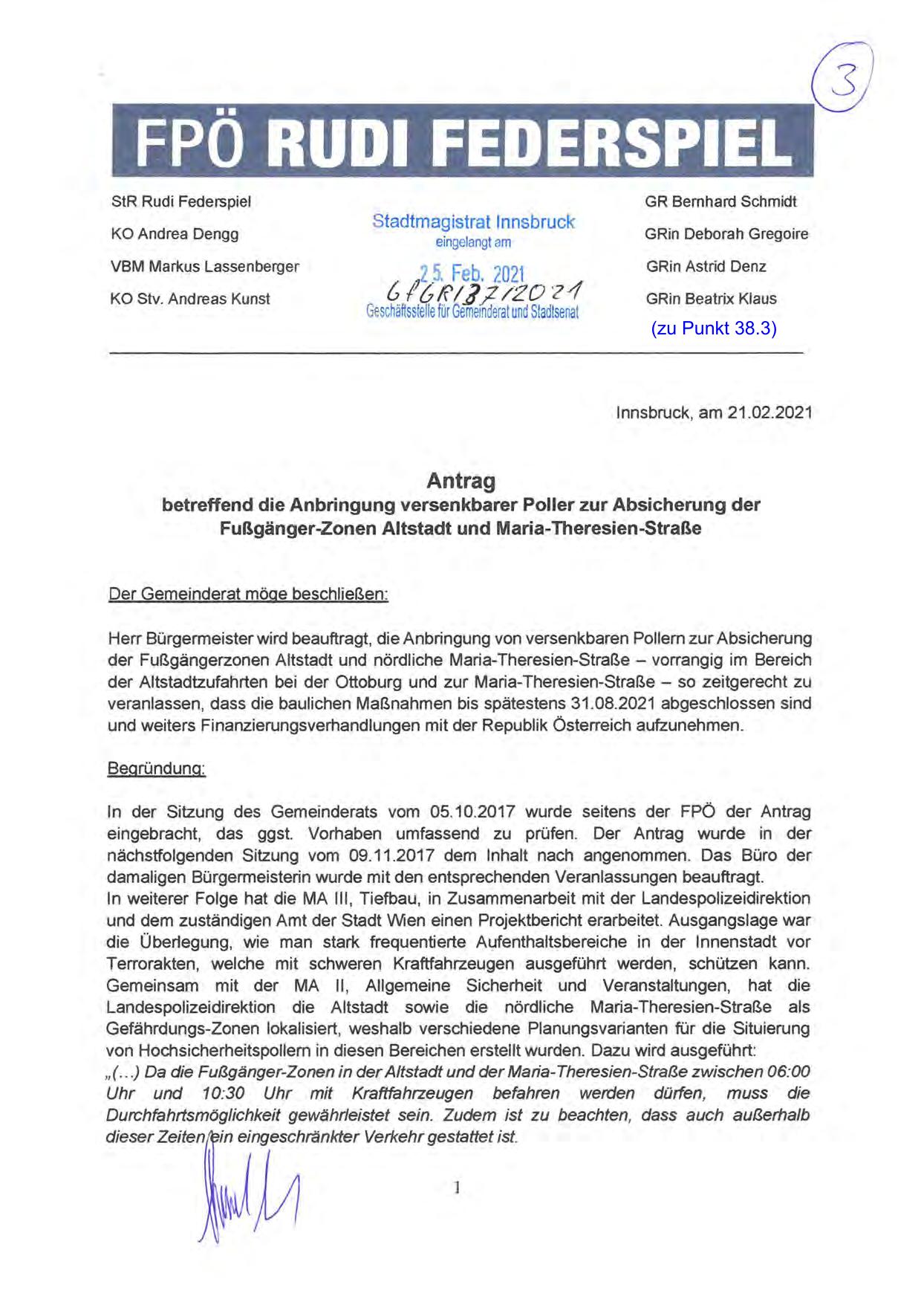 In der Sitzung des Gemeinderats vom 05.10.2017 wurde seitens der FPÖ der Antrag