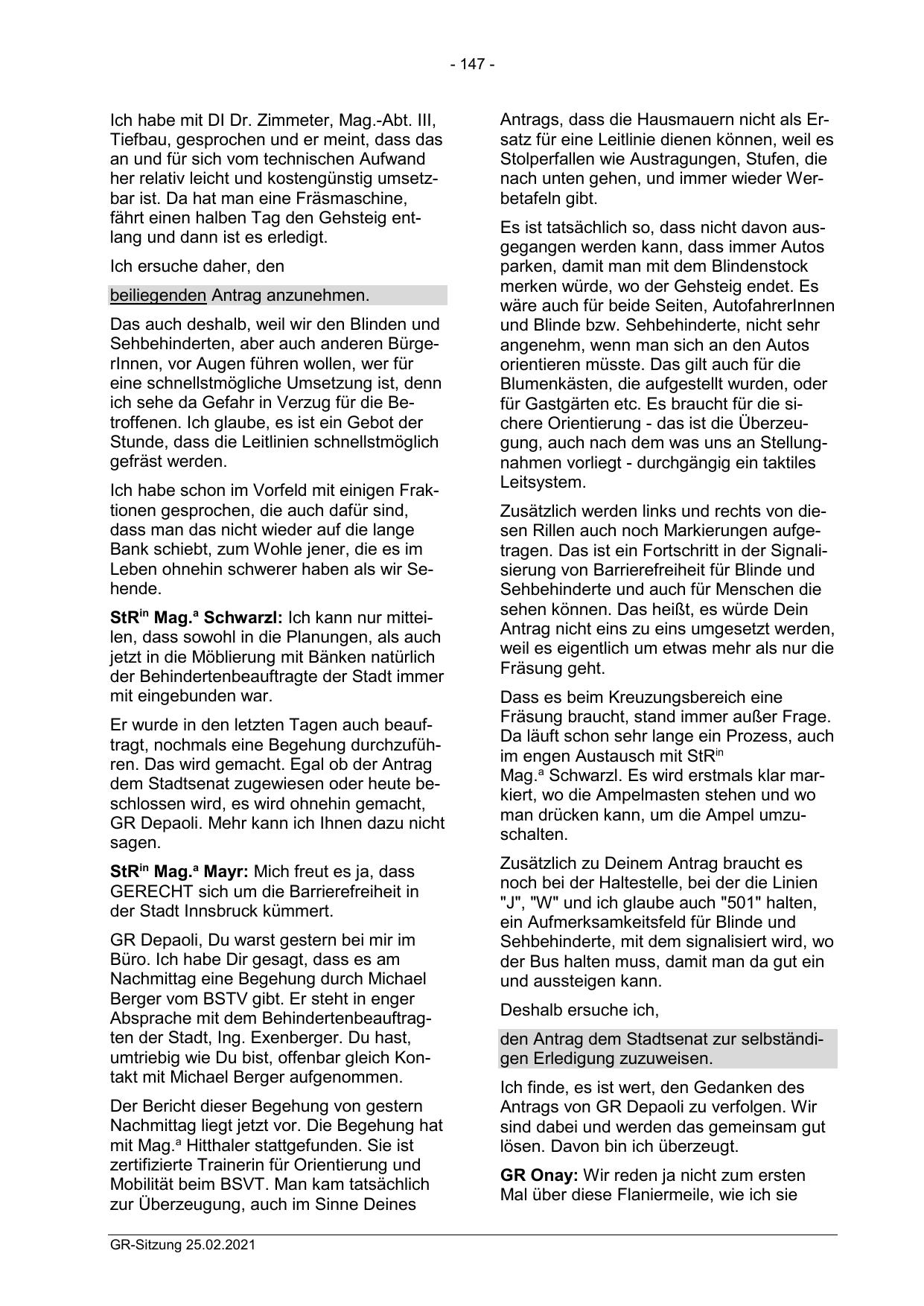 Absprache mit dem Behindertenbeauftragten der Stadt, Ing. Exenberger. Du hast,