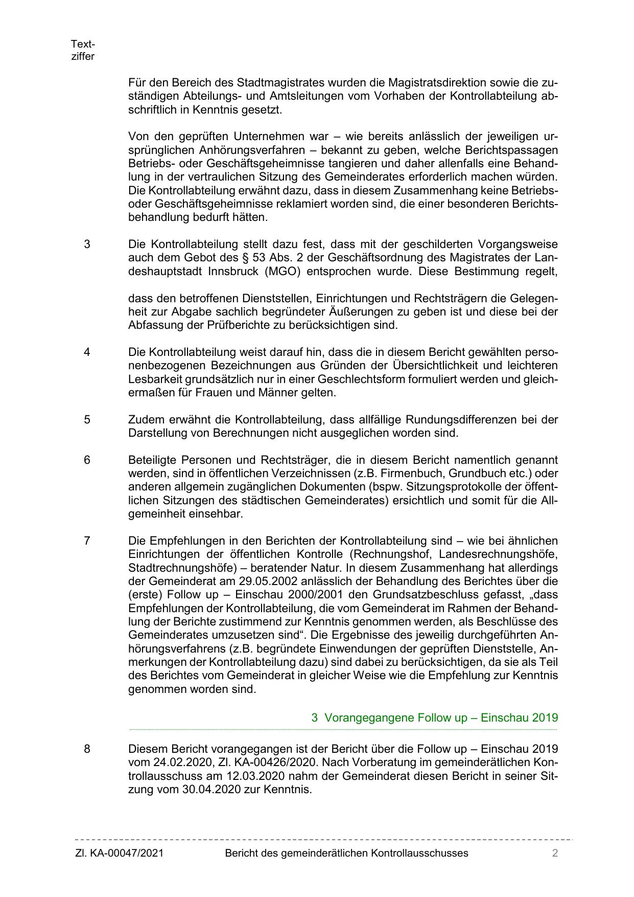 vom 24.02.2020, Zl. KA-00426/2020. Nach Vorberatung im gemeinderätlichen Kontrollausschuss am 12.03.2020 nahm der Gemeinderat diesen Bericht in seiner Sitzung vom 30.04.2020 zur Kenntnis.