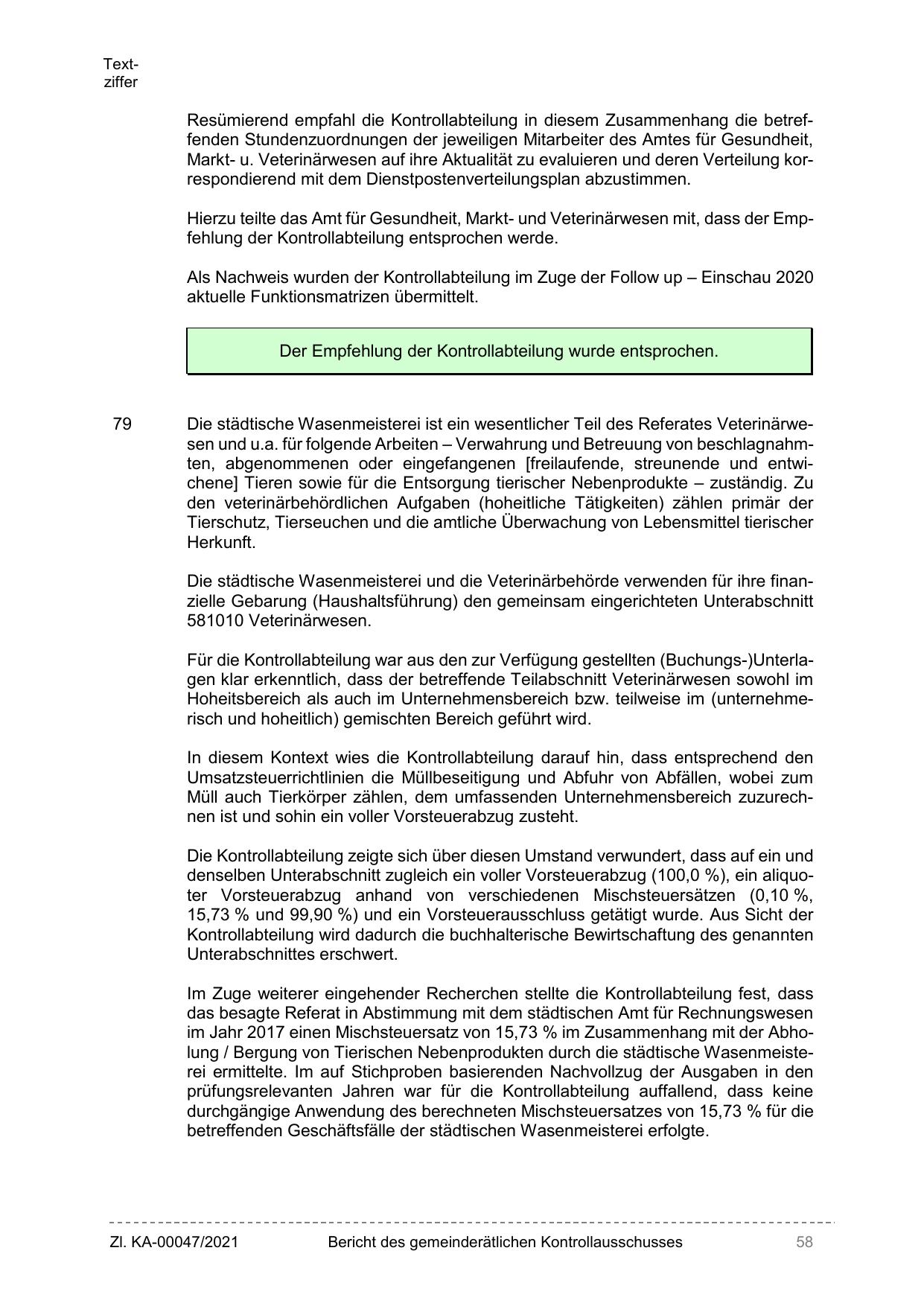 im Jahr 2017 einen Mischsteuersatz von 15,73 % im Zusammenhang mit der Abholung / Bergung von Tierischen Nebenprodukten durch die städtische Wasenmeisterei ermittelte. Im auf Stichproben basierenden Nachvollzug der Ausgaben in den