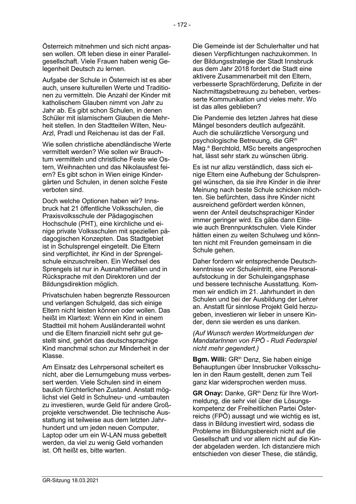 GR Onay: Danke, GRin Denz für Ihre Wortmeldung, die sehr viel über die Lösungskompetenz der Freiheitlichen Partei Österreichs (FPÖ) aussagt und wie wichtig es ist,