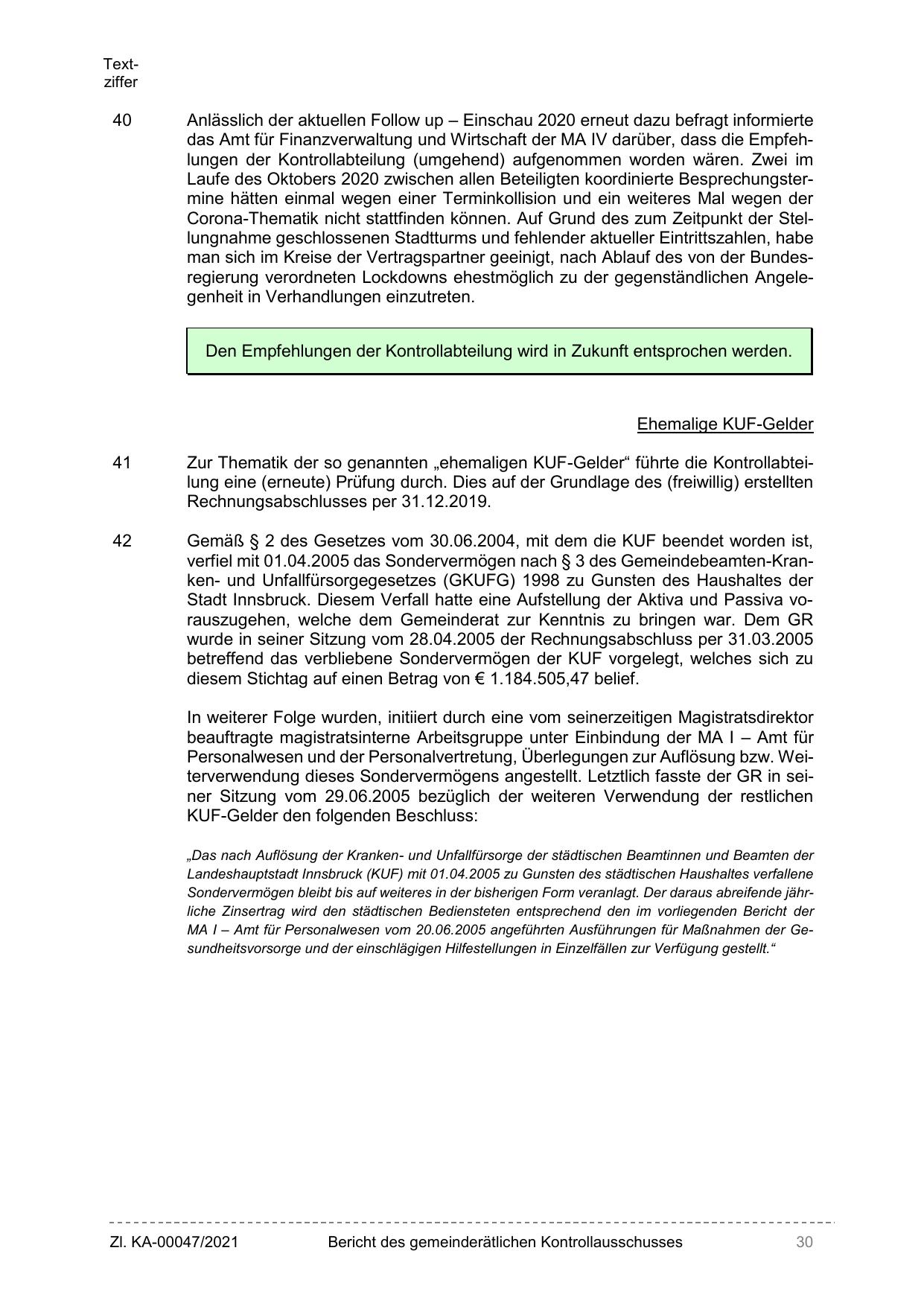 Landeshauptstadt Innsbruck (KUF) mit 01.04.2005 zu Gunsten des städtischen Haushaltes verfallene