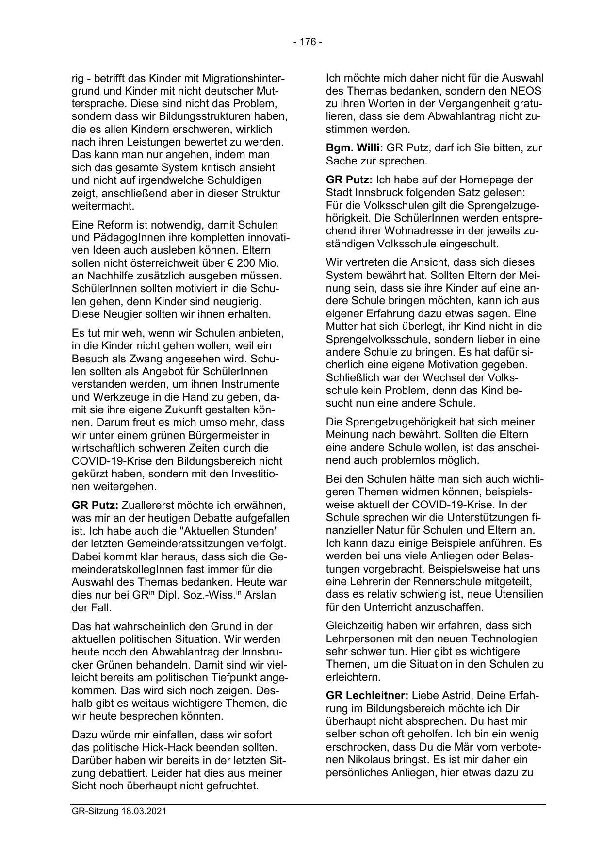 Bgm. Willi: GR Putz, darf ich Sie bitten, zur