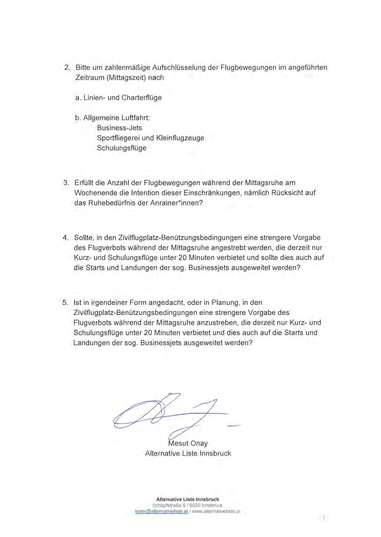 2. Bitte um zahlenmäßige Aufschlüsselung der Flugbewegungen im angeführten