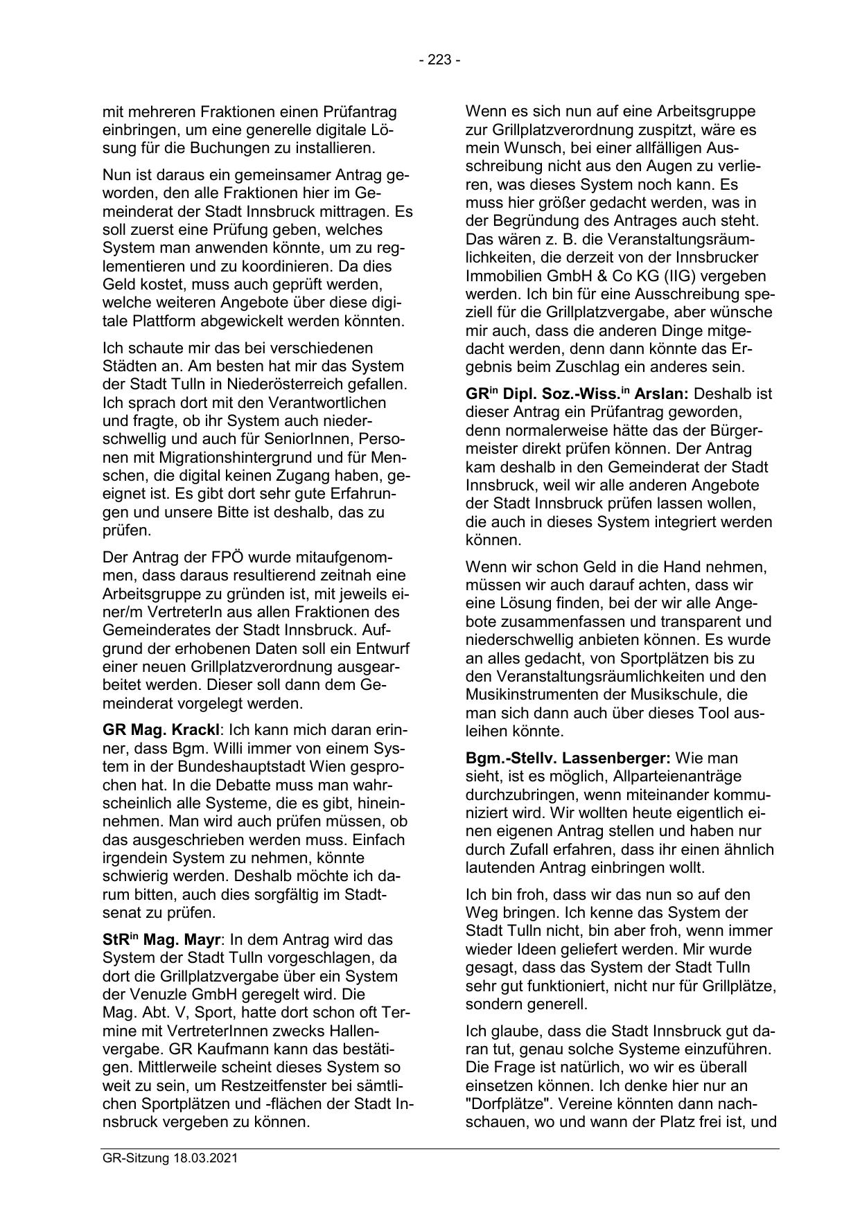 werden. Ich bin für eine Ausschreibung speziell für die Grillplatzvergabe, aber wünsche