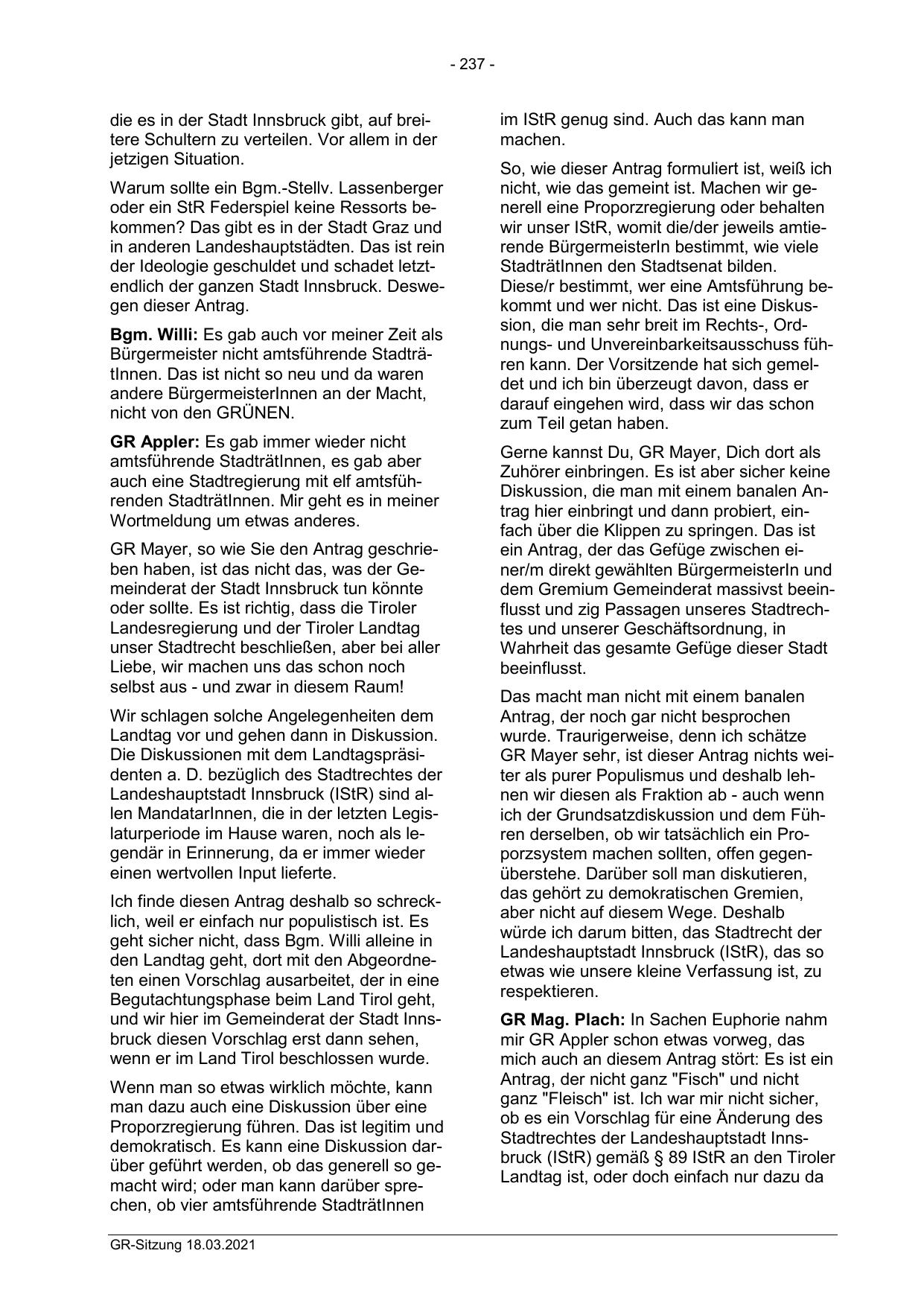 Landeshauptstadt Innsbruck (IStR) sind allen MandatarInnen, die in der letzten Legislaturperiode im Hause waren, noch als legendär in Erinnerung, da er immer wieder