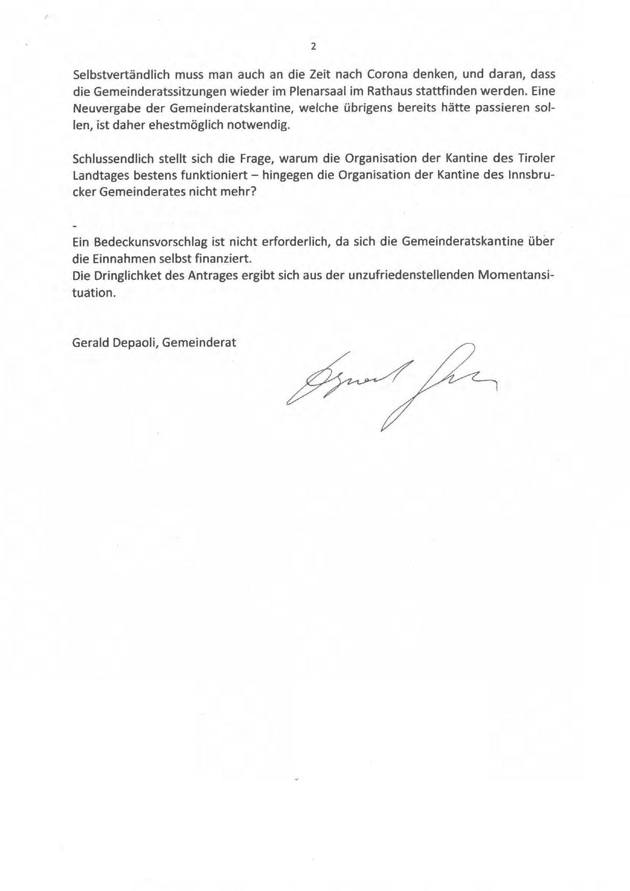 Landtages bestens funktioniert - hingegen die Organisation der Kantine des lnnsbrucker Gemeinderates nicht mehr?