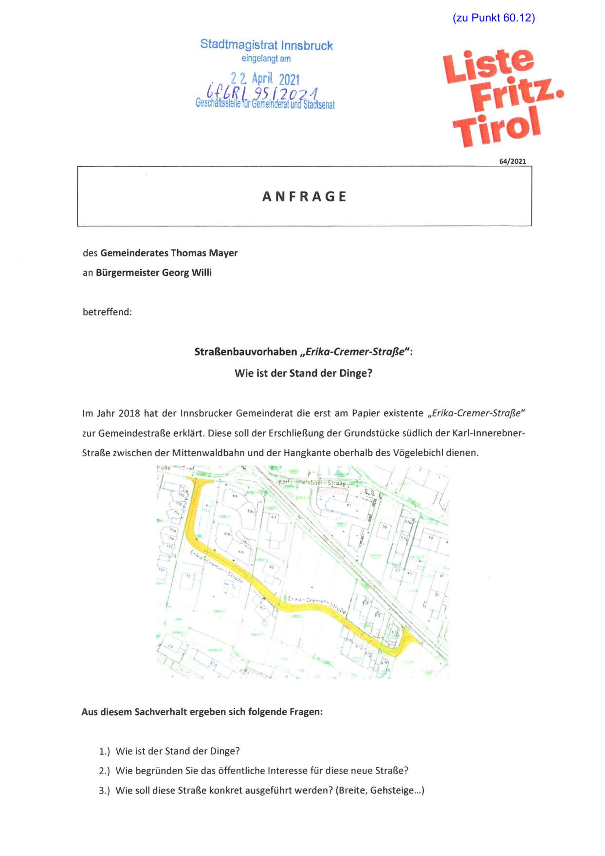 an Bürgermeister Georg Willi