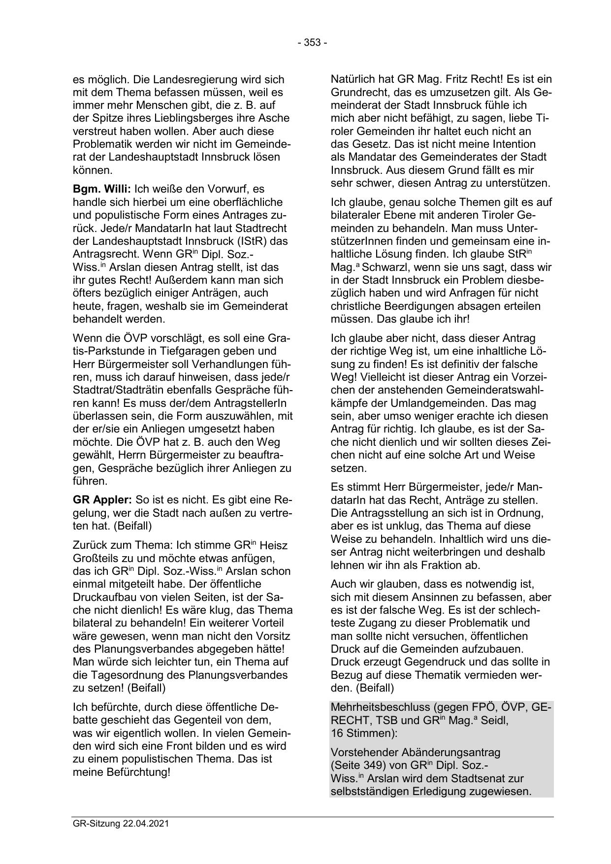 (Seite 349) von GRin Dipl. Soz.Wiss.in Arslan wird dem Stadtsenat zur