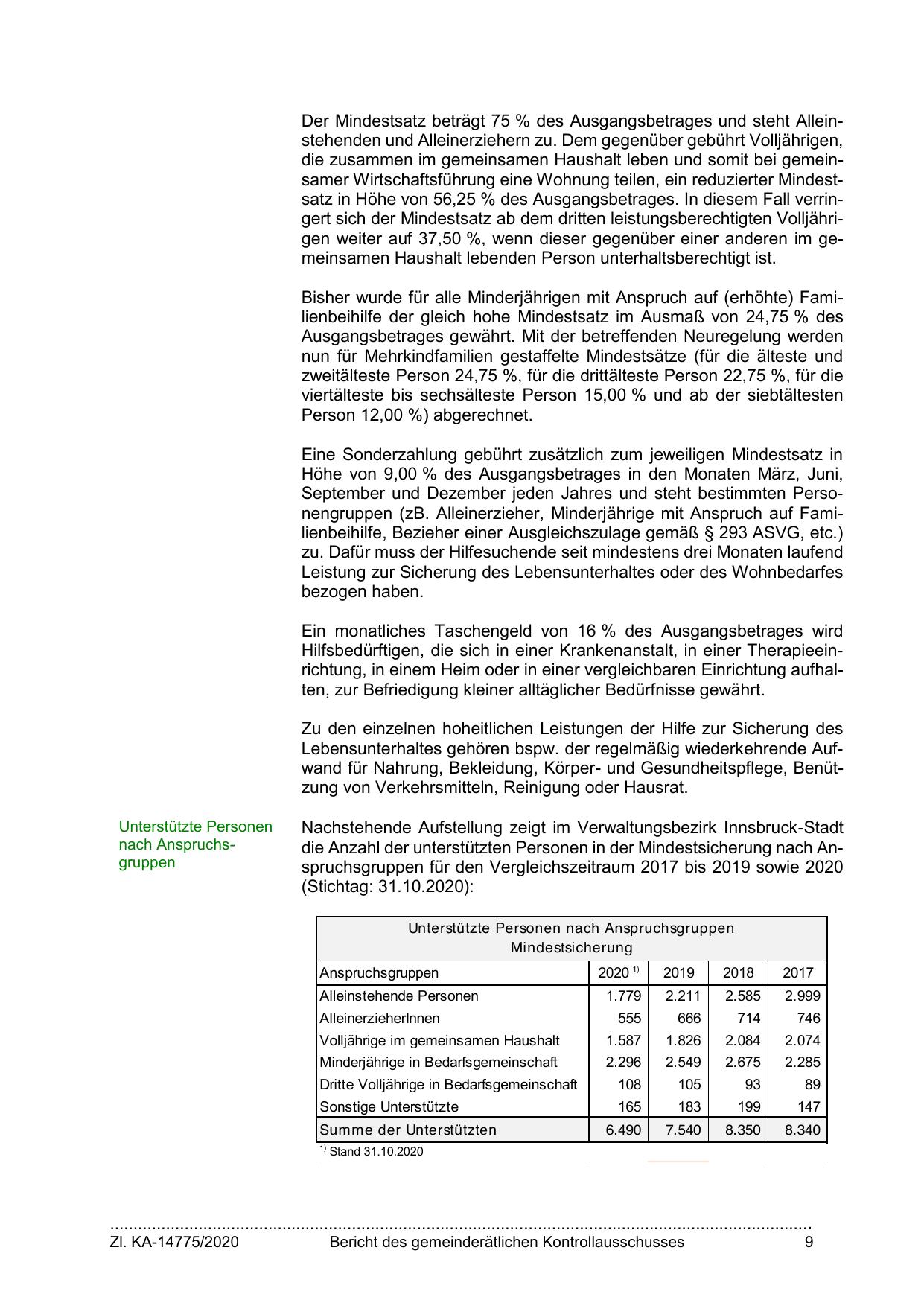 Nachstehende Aufstellung zeigt im Verwaltungsbezirk Innsbruck-Stadt