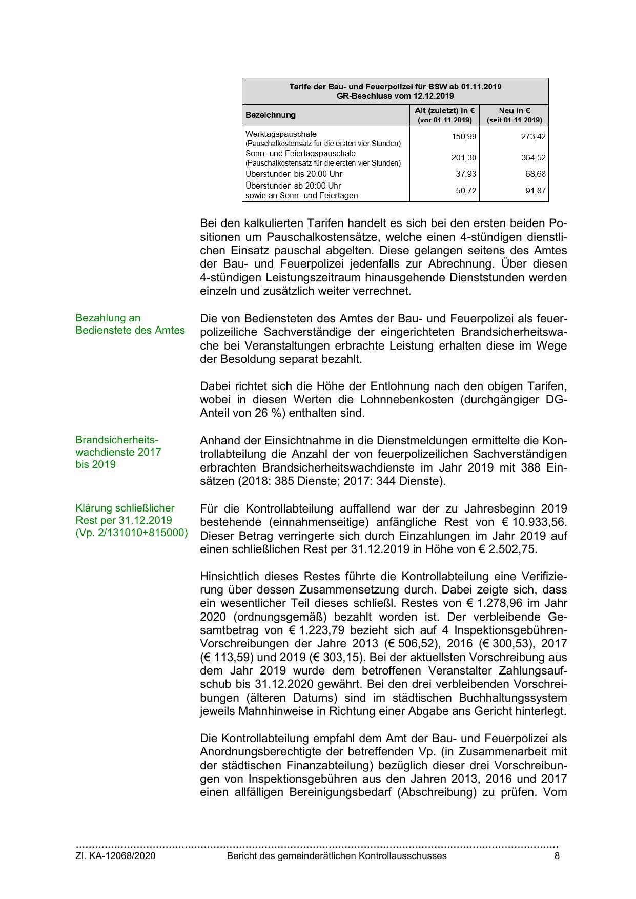 der Bau- und Feuerpolizei jedenfalls zur Abrechnung. Über diesen