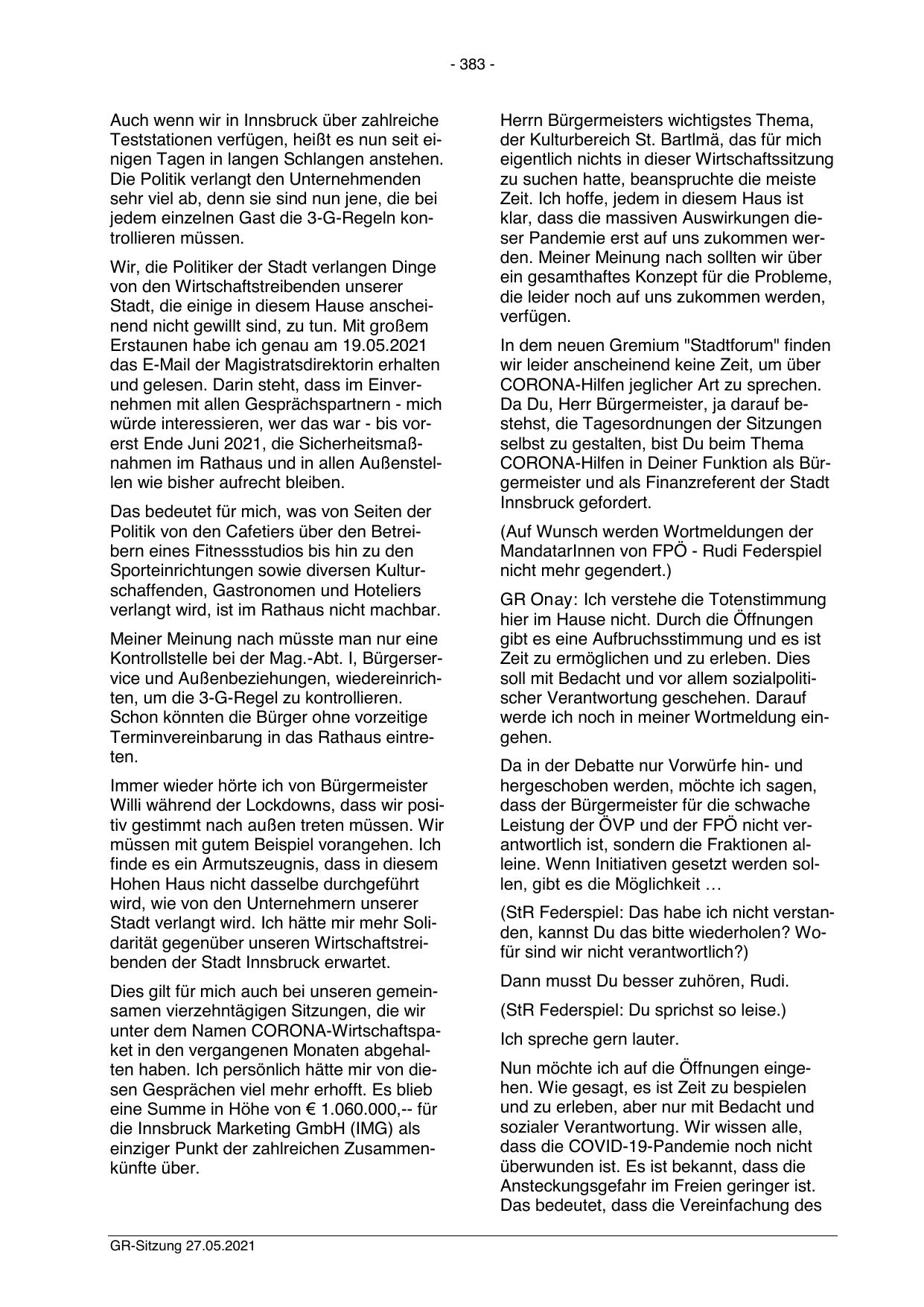 Stadt verlangt wird. Ich hätte mir mehr Solidarität gegenüber unseren Wirtschaftstreibenden der Stadt Innsbruck erwartet.