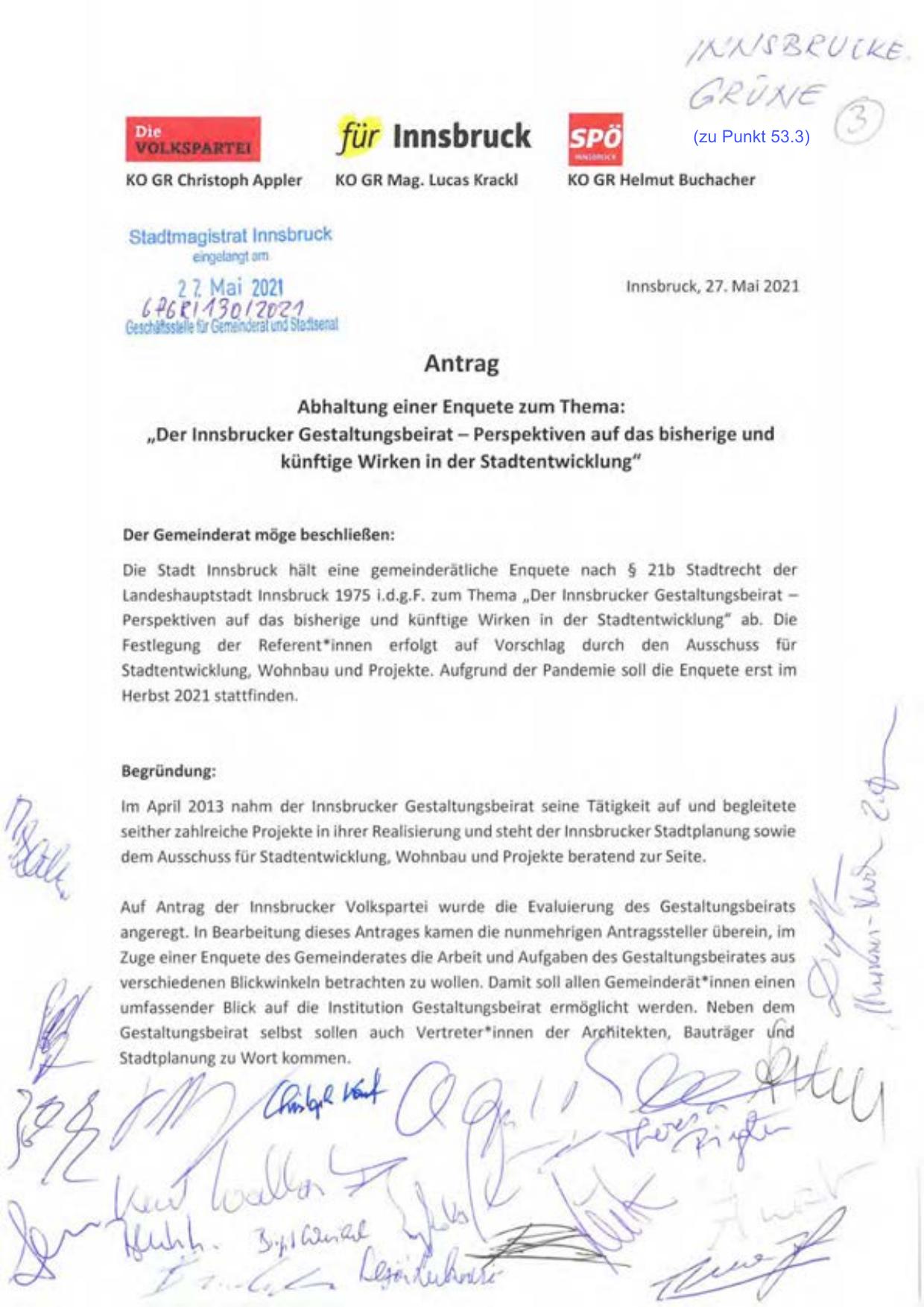 Auf Antrag der lnnsbrucker Volkspartei wurde die Evaluierung des Gestaltungsbeirats