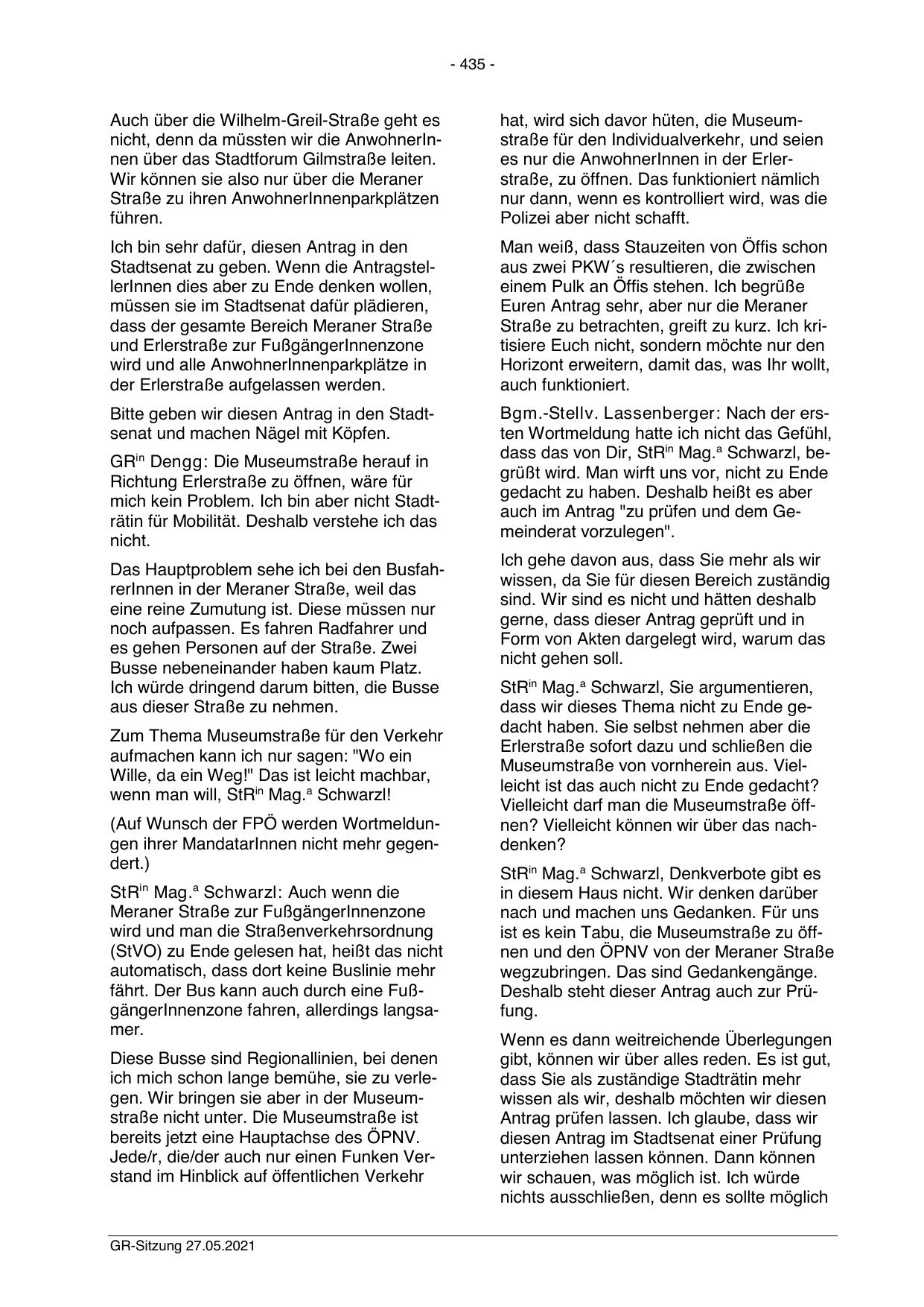 (Auf Wunsch der FPÖ werden Wortmeldungen ihrer MandatarInnen nicht mehr gegendert.)