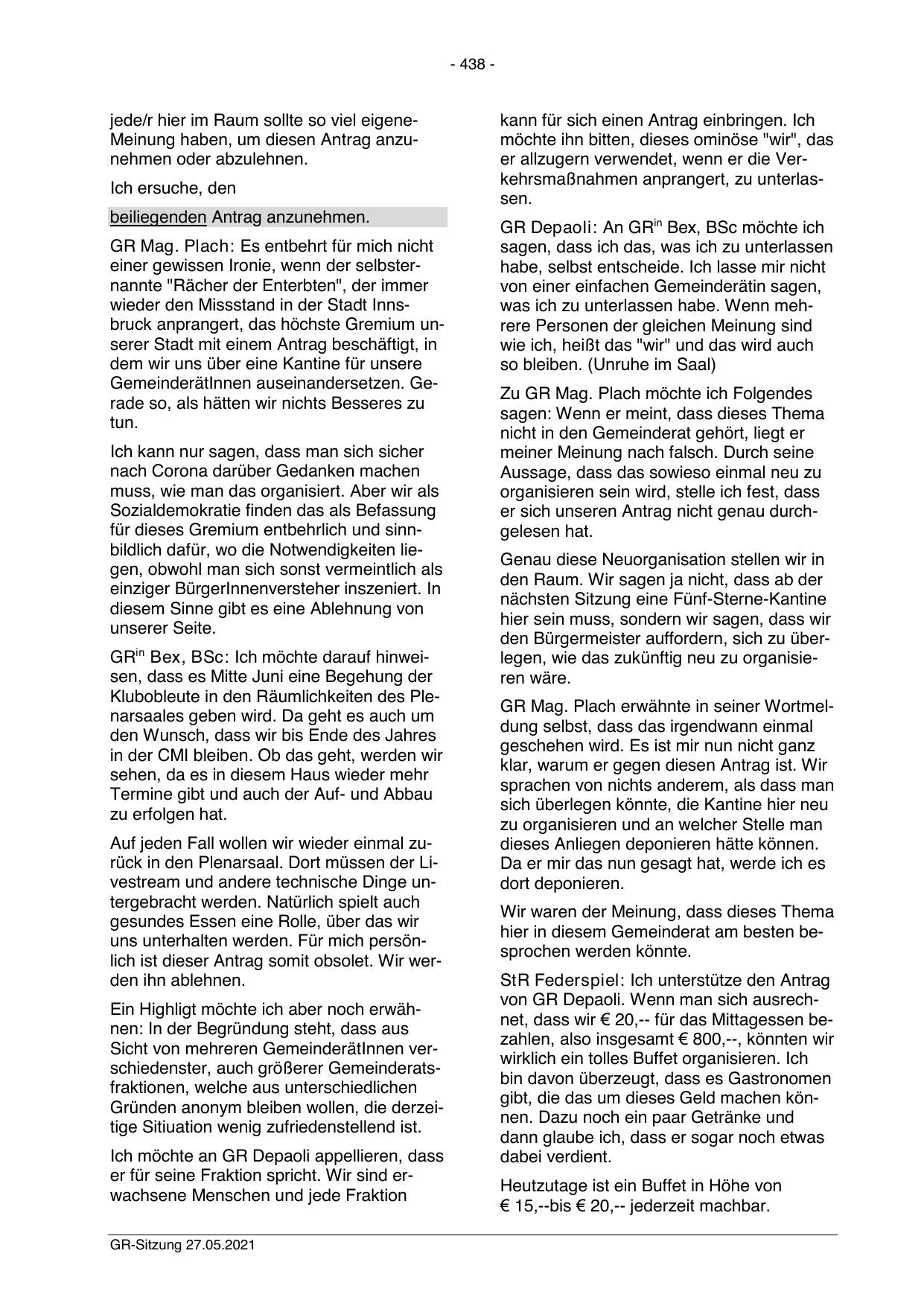 von GR Depaoli. Wenn man sich ausrechnet, dass wir € 20,-- für das Mittagessen bezahlen, also insgesamt € 800,--, könnten wir
