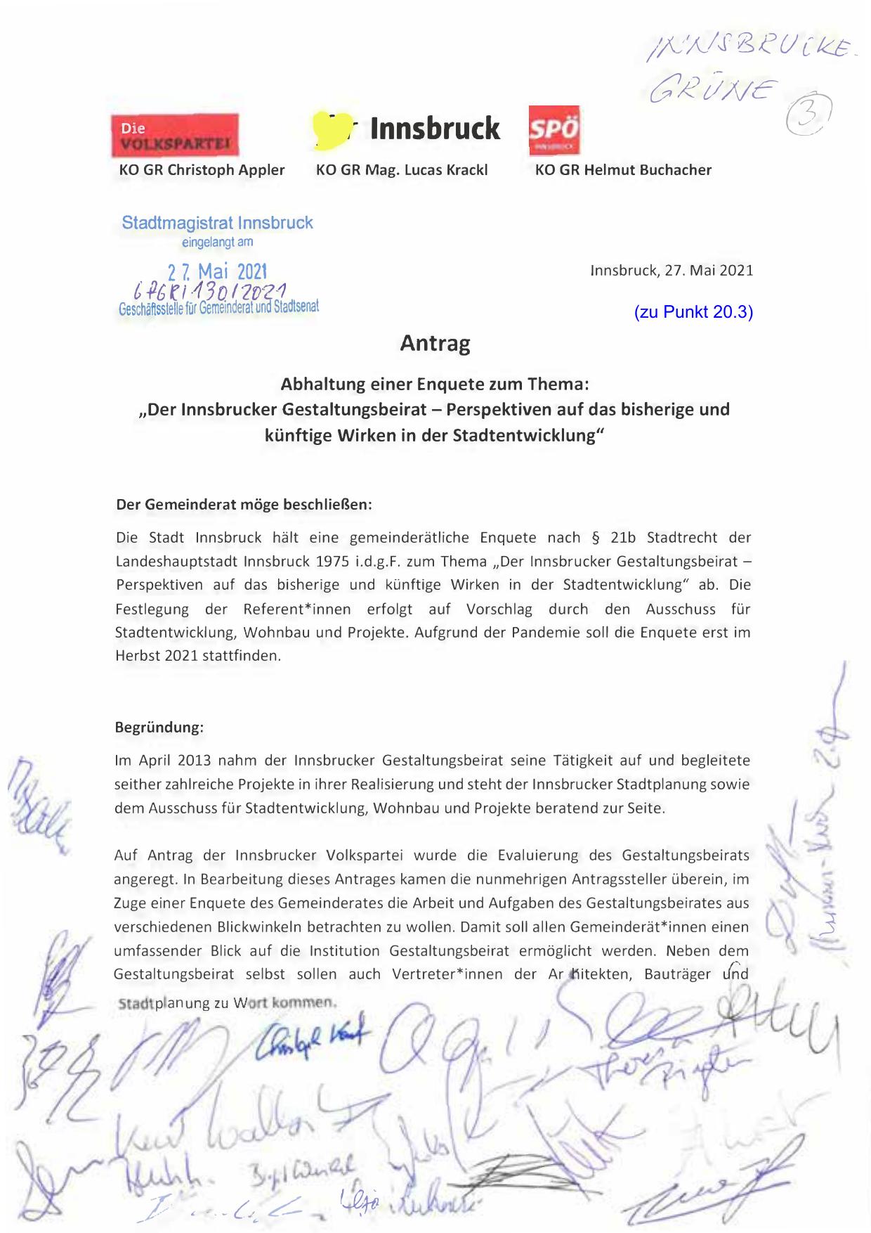 Auf Antrag der lnnsbrucker Volkspartei wurde die Evaluierung des Gestaltungsbeirats