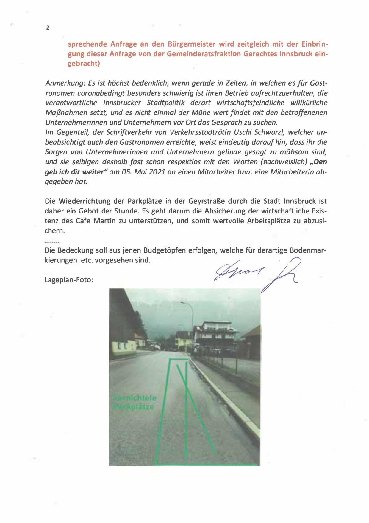 gu ng dieser Anfrage von der Gemeinderatsfraktion Gerechtes Innsbruck e.i n­
